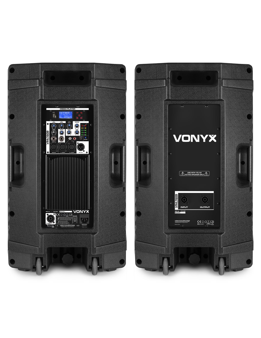 El VSA150S es un Sistema de 15” plug & play en carcasa rígida ABS, consistente en un altavoz potente de 15" con un amplificador integrado estéreo que alimenta otra unidad pasiva de 15". La unidad active que incluye el amplificador, tiene también un reproductor USB y receptor BT para stream tu música de forma inalámbrica desde smartphone o tableta. Ideal para disco movil gracias a sus ruedas y asas de transporte.