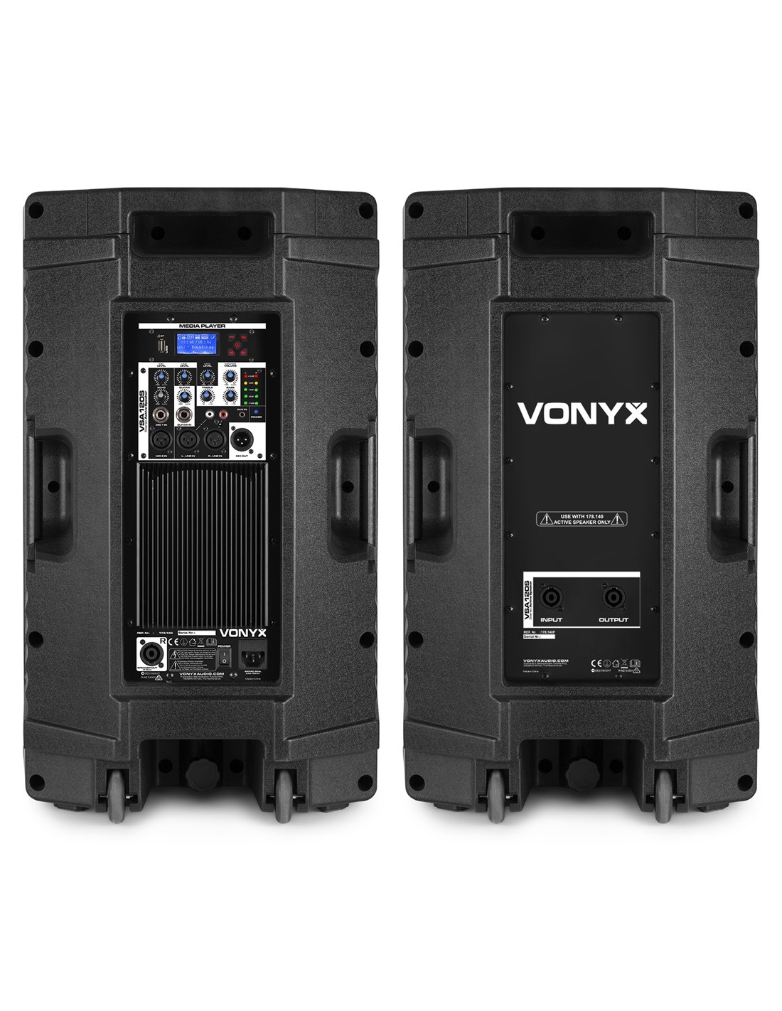 El VSA120S es un Sistema de 12” plug & play en carcasa rígida ABS, consistente en un altavoz potente de 12" con un amplificador integrado estéreo que alimenta otra unidad pasiva de 12". La unidad active que incluye el amplificador, tiene también un reproductor USB y receptor BT para stream tu música de forma inalámbrica desde smartphone o tableta. Ideal para disco movil gracias a sus ruedas y asas de transporte.
