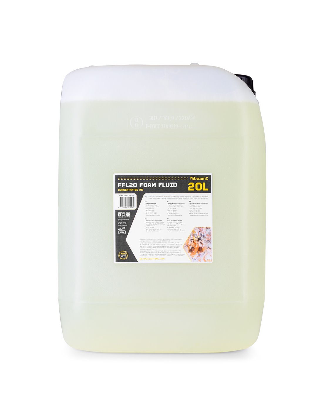 Concentrado de alta calidad para la producción de un alto volumen de espuma. Este concentrado se mezcla con agua en el porcentaje indicado abajo. Para funcionar con el cañon de espuma JFC1000.