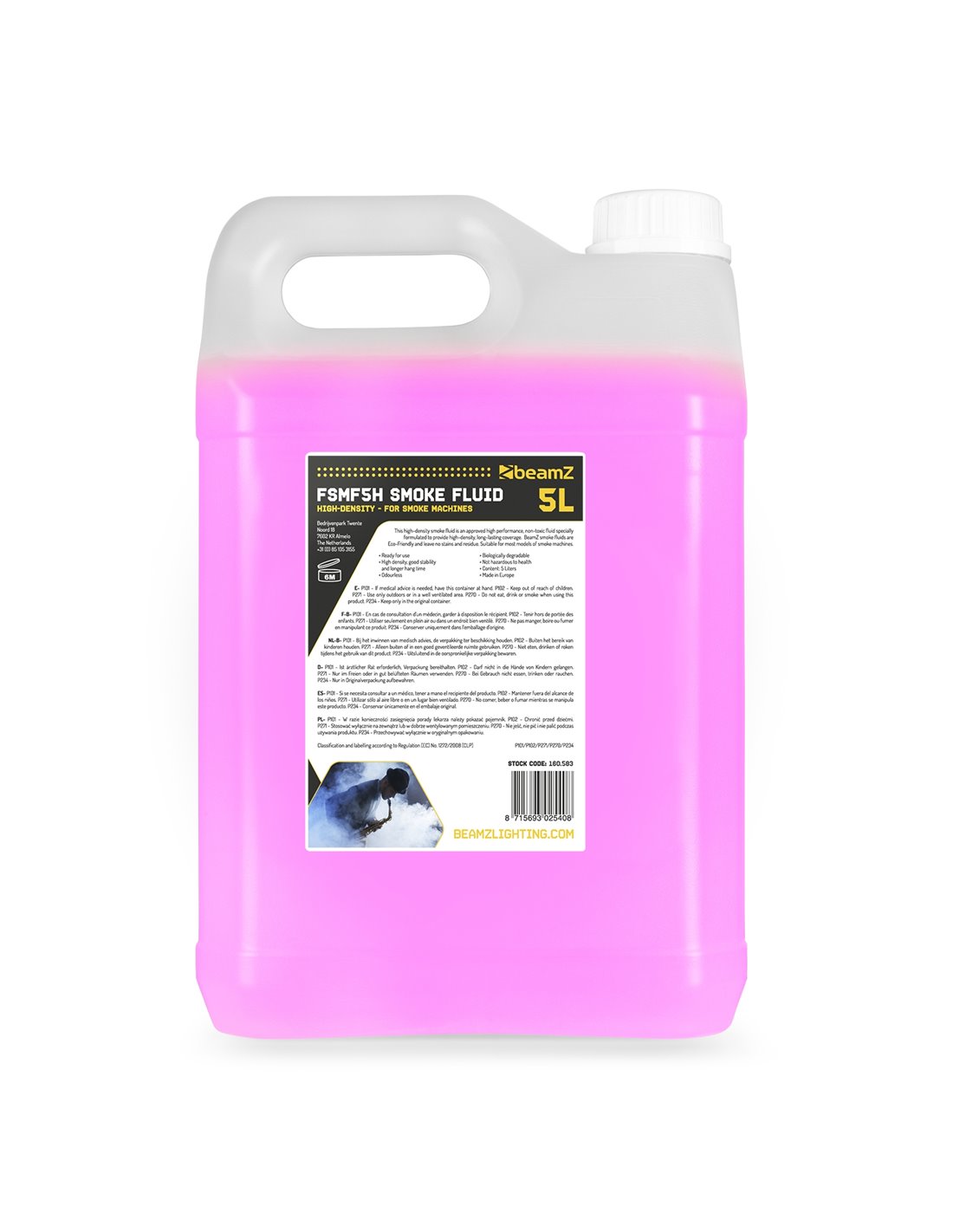 Este líquido de humo de alta densidad está aprobado gracias a su fórmula no tóxica para crear humo de alta densidad con gran cobertura en todo tipo de fiestas. Los líquidos BeamZ son ecológicos y no dejan residuos. Para usar en todos los modelos estándar de máquinas de humo.