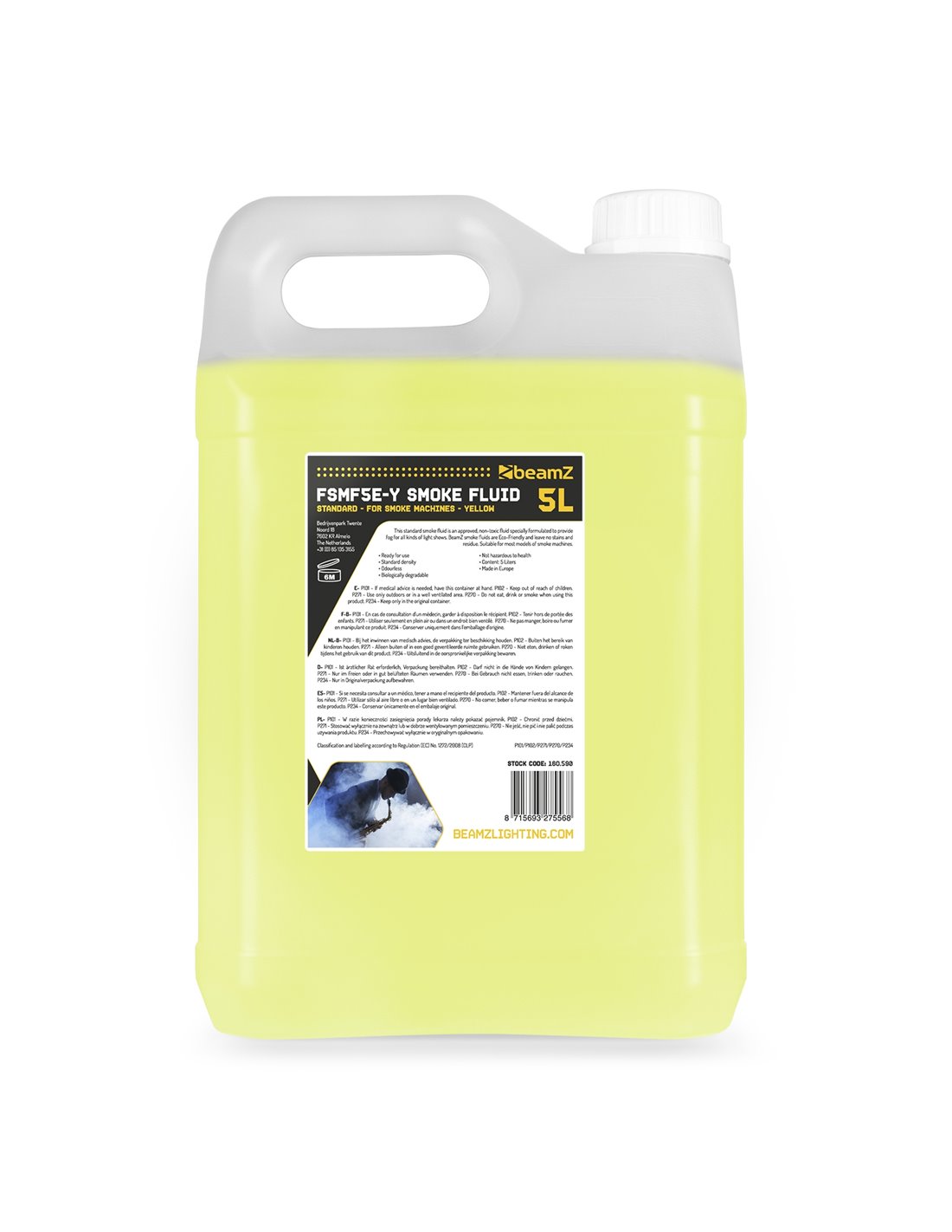 Este líquido de humo estandar está aprobado gracias a su fórmula no tóxica para crear humo en todo tipo de fiestas. Los líquidos BeamZ son ecológicos y no dejan residuos. Para usar en todos los modelos estándar de máquinas de humo.