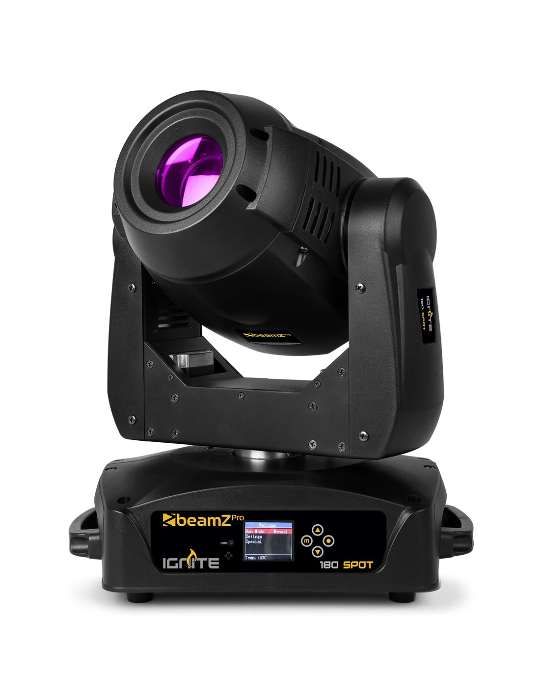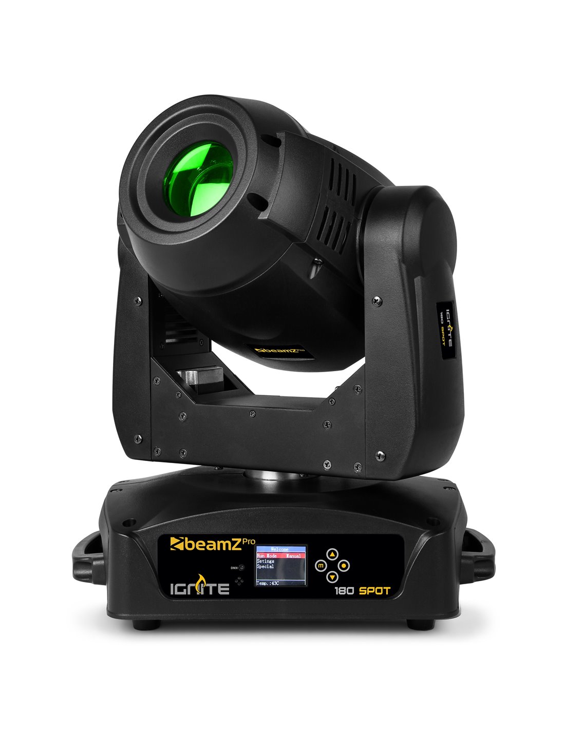 El IGNITE180S es una potente cabeza movil por LED con un brillante led de 180W blanco. Equipado con doble rueda de gobos (con gobos intercambiables) para crear efectos increibles. Combinado con 2 prismas rotativos individuales (3+6) se consiguen efectos aereos en 8 colores. Su rayo de solo 15 grados lo convierte en la opcion ideal para proyectar gobos y rayos moviles. LED 180W Alta intensidad 13 o 17 canales DMX DMX y Autonomo Master/esclavo Ritmo de la musica con ajuste de sensibilidad Auto Angulo Beam 15° Rueda Gobo 1: Gobos 3x cristal y 3x metalicos + abierto (reemplazable) Rueda Gobo 2: Gobos 8x metalicos + abierto Funcion de gobos: gobo tremolo y gobo rotacion 7 Colores + abierto Colores partidos, efecto arcoiris Prisma de 3 facetas rotatorio Prisma de 6 facetas rotatorio - Linear Foco motorizado Dimmer electronico 0-100% Strobo: 0-20Hz Correccion automatica de pan/tilt Funcion Reset Panel de control con display LCD DMX in/out via 3-pin XLR Powercon de input/output Garra Quick lock omega incluida (2x) Cable DMX incluido Powercon cable incluido