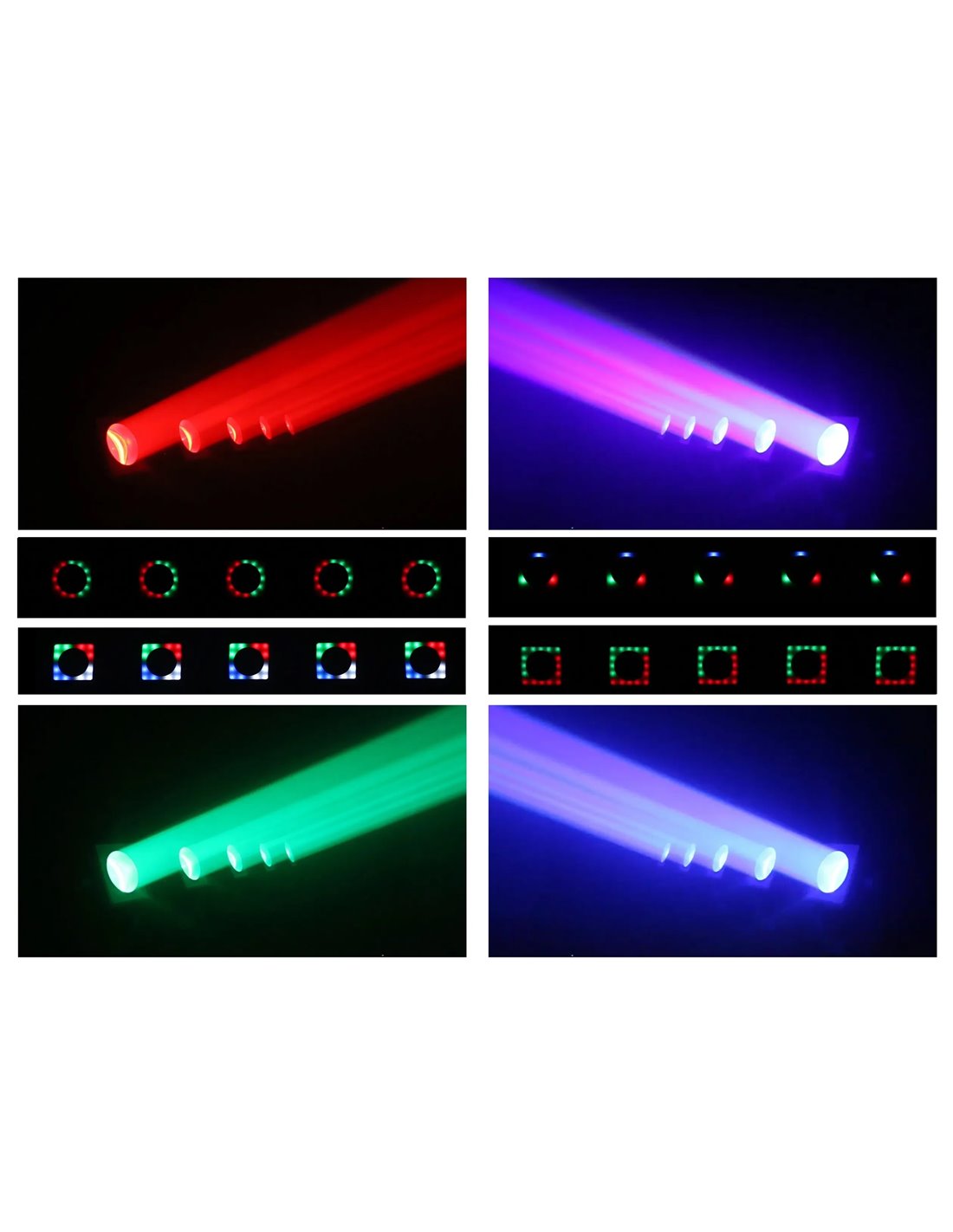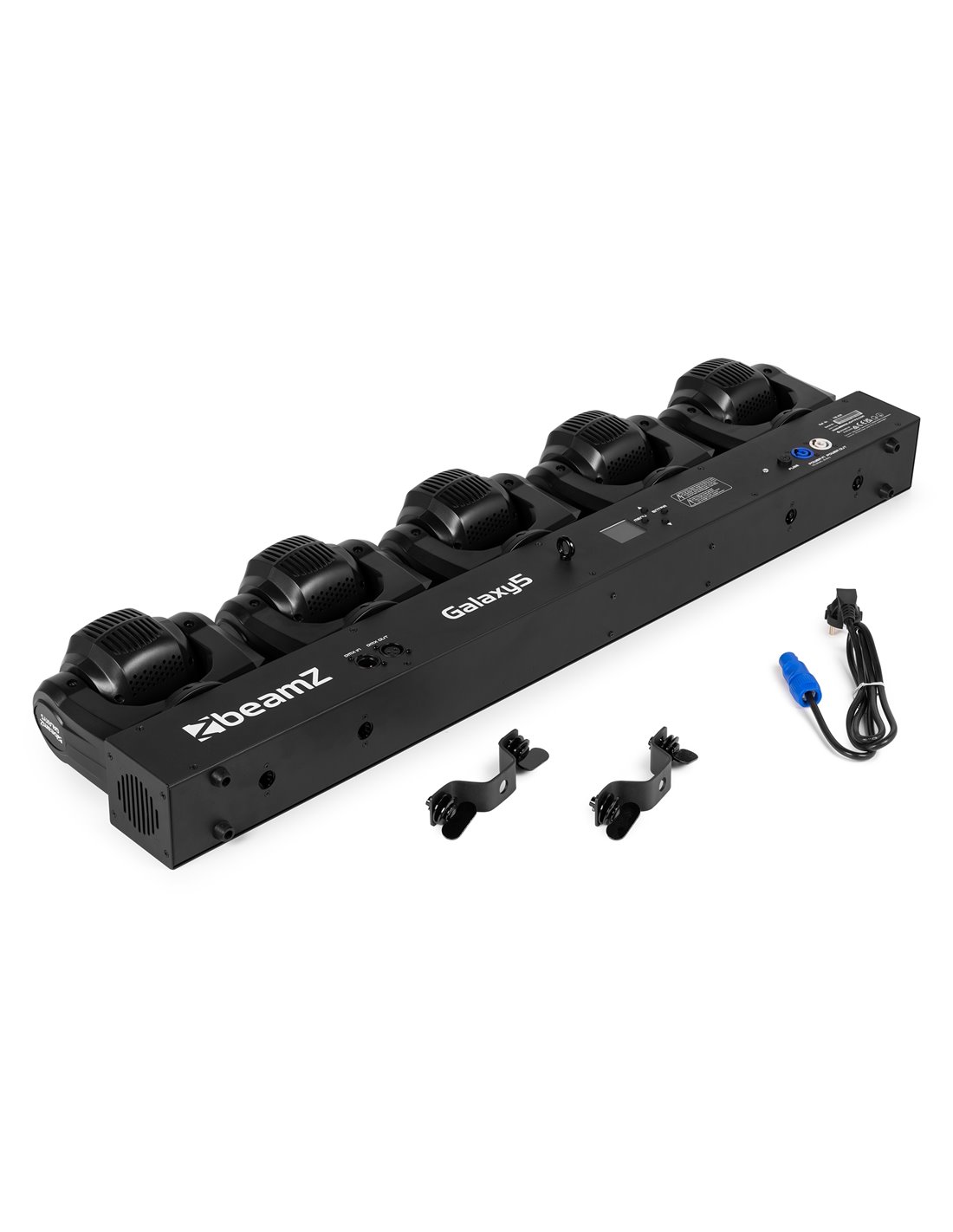 La barra de cabeza móvil Galaxy es una barra compacta equipada con cinco cabezas móviles controlables de forma independiente. Cada cabeza móvil está alimentada por un LED RGBW de 40 W de alta potencia, complementado con 120 LED RGB en el anillo de píxeles para crear un espectáculo de luces espectacular. Diseñada para la flexibilidad, la barra de cabeza móvil Galaxy se puede montar fácilmente en un soporte de iluminación o truss utilizando el soporte de poste incorporado y los soportes omega. Este todoterreno ofrece múltiples opciones de control, incluyendo DMX para configuraciones profesionales, activación por sonido y funcionamiento autónomo con una cómoda función Maestro/Esclavo. Esta versatilidad lo convierte en una opción ideal para DJs, bandas, clubes, bares y cualquier configuración donde el espacio sea escaso.