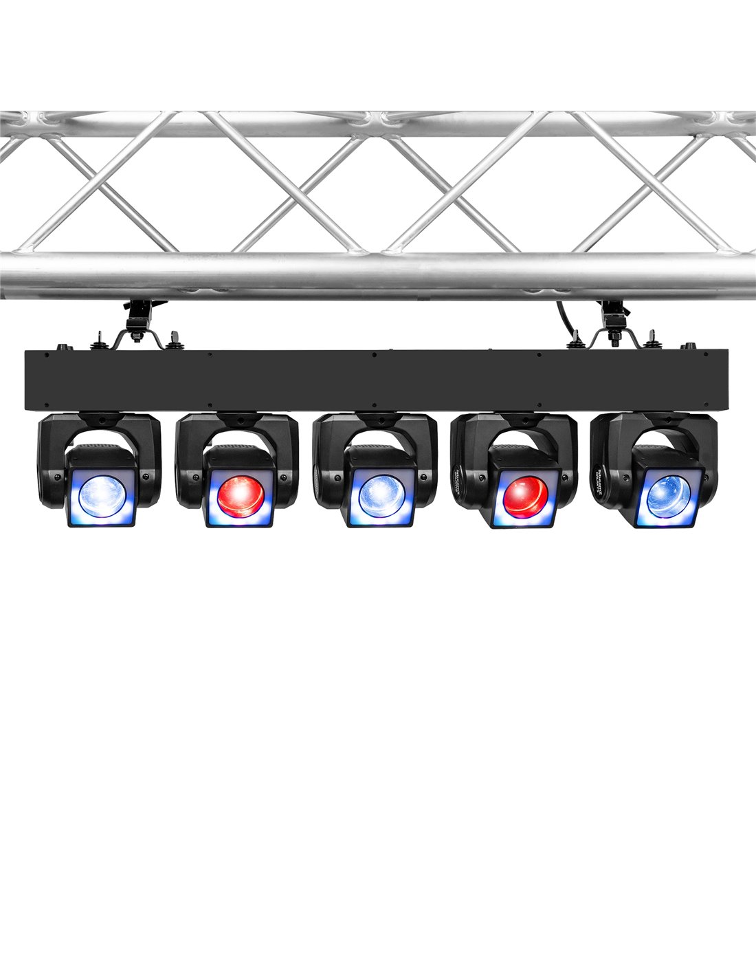 Barra de iluminación compacta con 5 cabezas móviles controlables individualmente