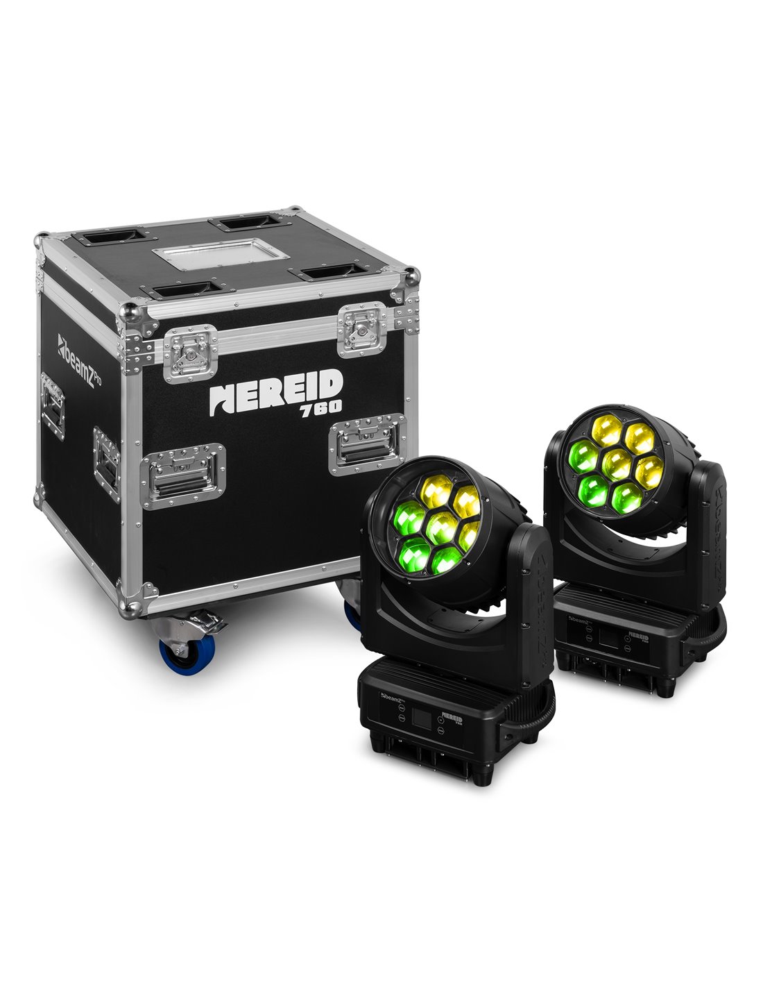 Un kit completo de 2 cabezales móviles Nereid760 de panel de abeja suministrados en un estuche de transporte sólido y resistente.