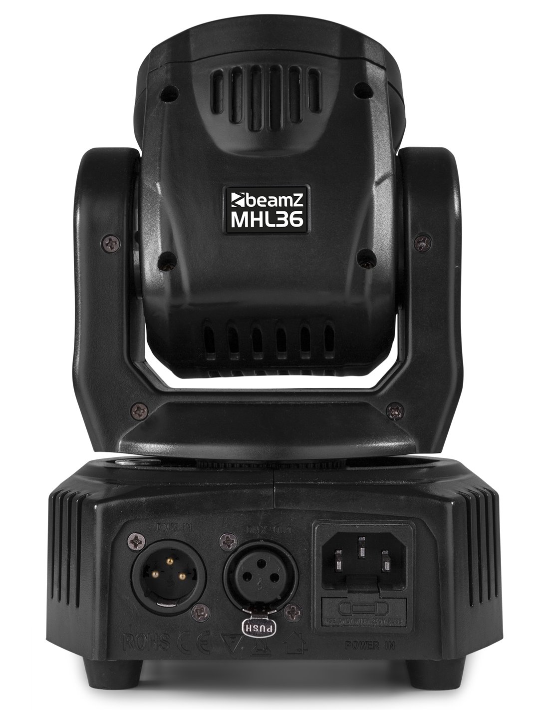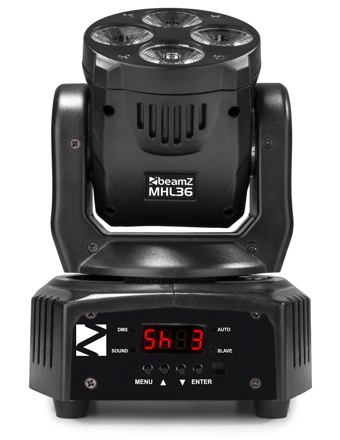 Cabeza movil muy compacta con LED 4x 9W 4-en-1 connalta salida luminica y pefecta mezcla de colores. Ofrece un angulo de rayo de 26°, 14 y 16 canales DMX, color strobo, dimmer electronico etc. Suave per extremadamente rapido en los movimientos 540° Pan y 180° Tilt. Este kit se suministran 2 piezas en una bolsa de transporte BeamZ.