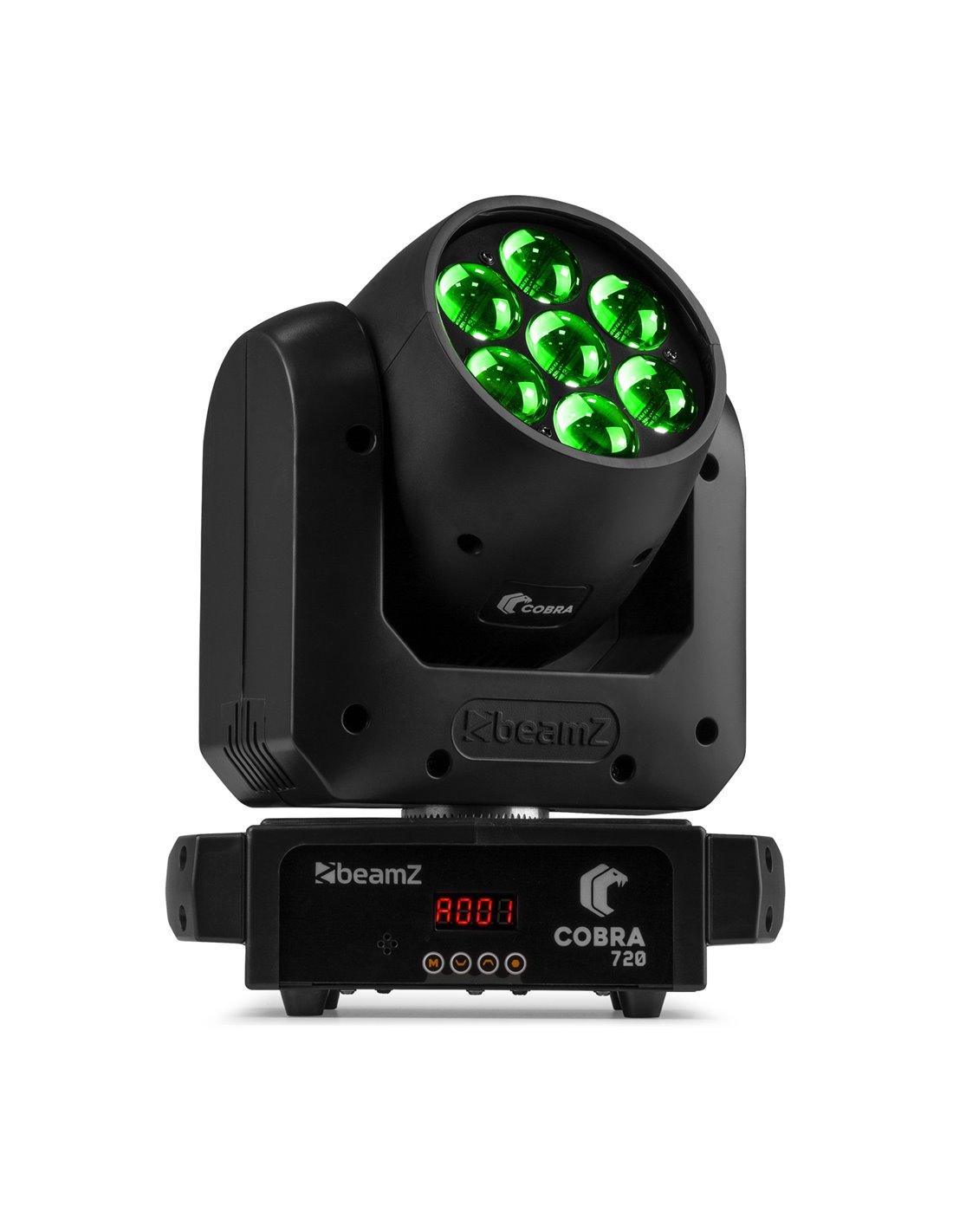 Con un movimiento de 16 bits y un rango de giro e inclinación de 540 grados y 190 grados respectivamente, puede lograr fácilmente el posicionamiento exacto para sus efectos de iluminación. Además, con su carcasa compacta y su bajo peso, la serie Cobra es perfecta para profesionales e instalaciones móviles donde el espacio es crítico. Controlada por DMX, con activación por sonido o utilizada en modo autónomo con la función Maestro/Esclavo, la serie Cobra es muy versátil y fácil de usar.
