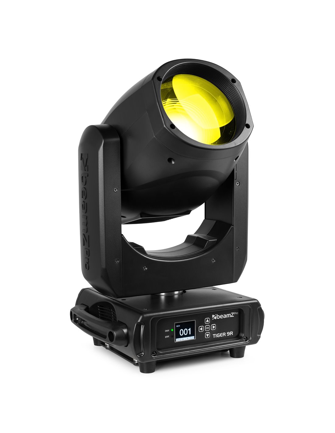 El Tiger 9R es una potente cabeza móvil que genera una impresionante salida de luz con su lámpara de descarga de alta intensidad 9R de 260 W. Esta versátil cabeza móvil presenta una amplia gama de efectos, incluida la mezcla de colores, un efecto de escarcha, varios gobos y prismas, lo que brinda a los usuarios un control preciso sobre sus diseños de iluminación. El Tiger 9R incluye una rueda de gobos equipada con 14 patrones más una posición abierta y una rueda de color con 14 colores más una posición abierta, que ofrece infinitas posibilidades creativas. Las posibilidades se amplían aún más con los prismas giratorios motorizados de 8 y 48 facetas, que permiten crear espectáculos de luz fascinantes y dinámicos. Al funcionar sin problemas en modo DMX o autónomo, el Tiger 9R ofrece flexibilidad en la configuración y el funcionamiento. ¡Diseñado para brindar simplicidad y facilidad de uso!
