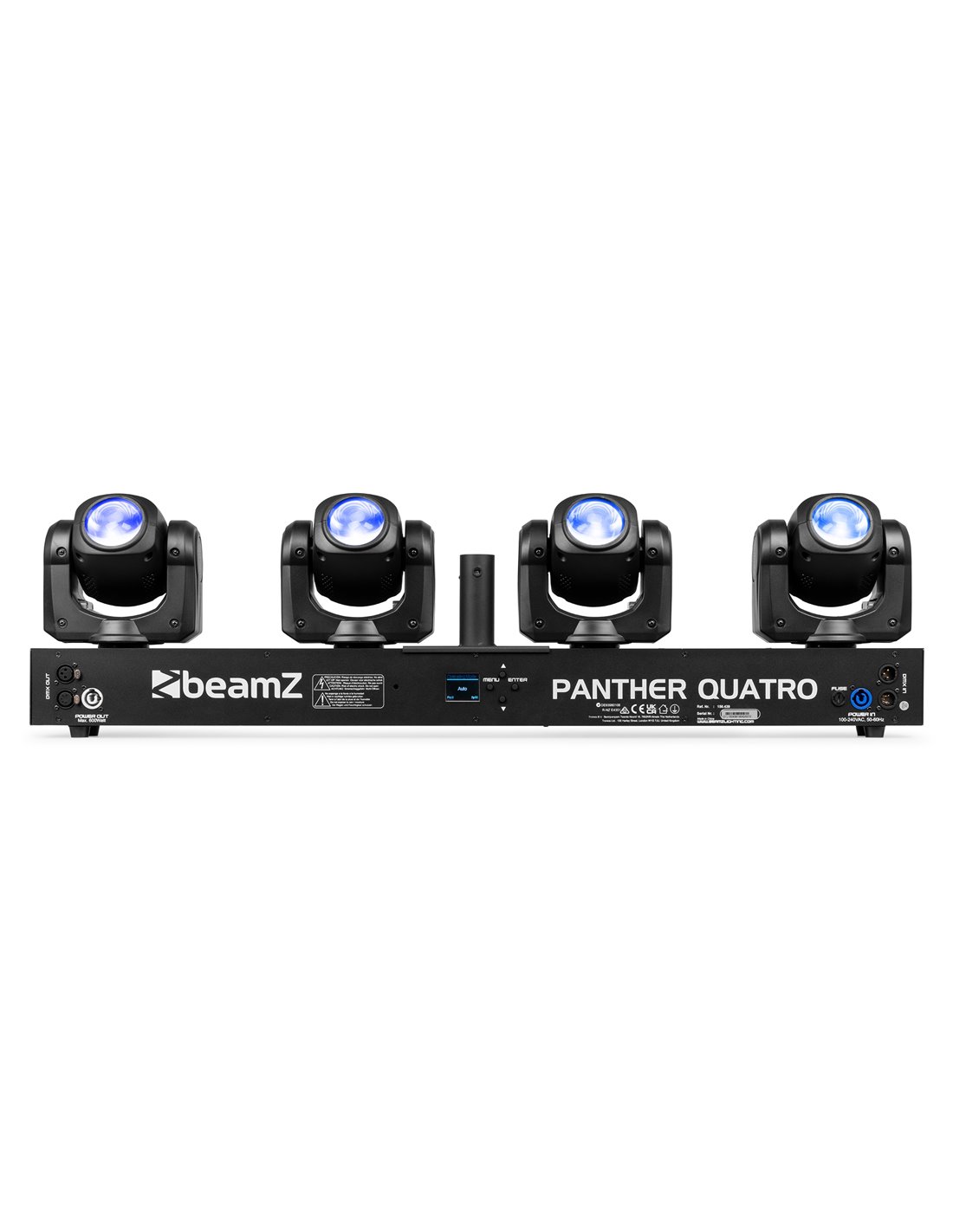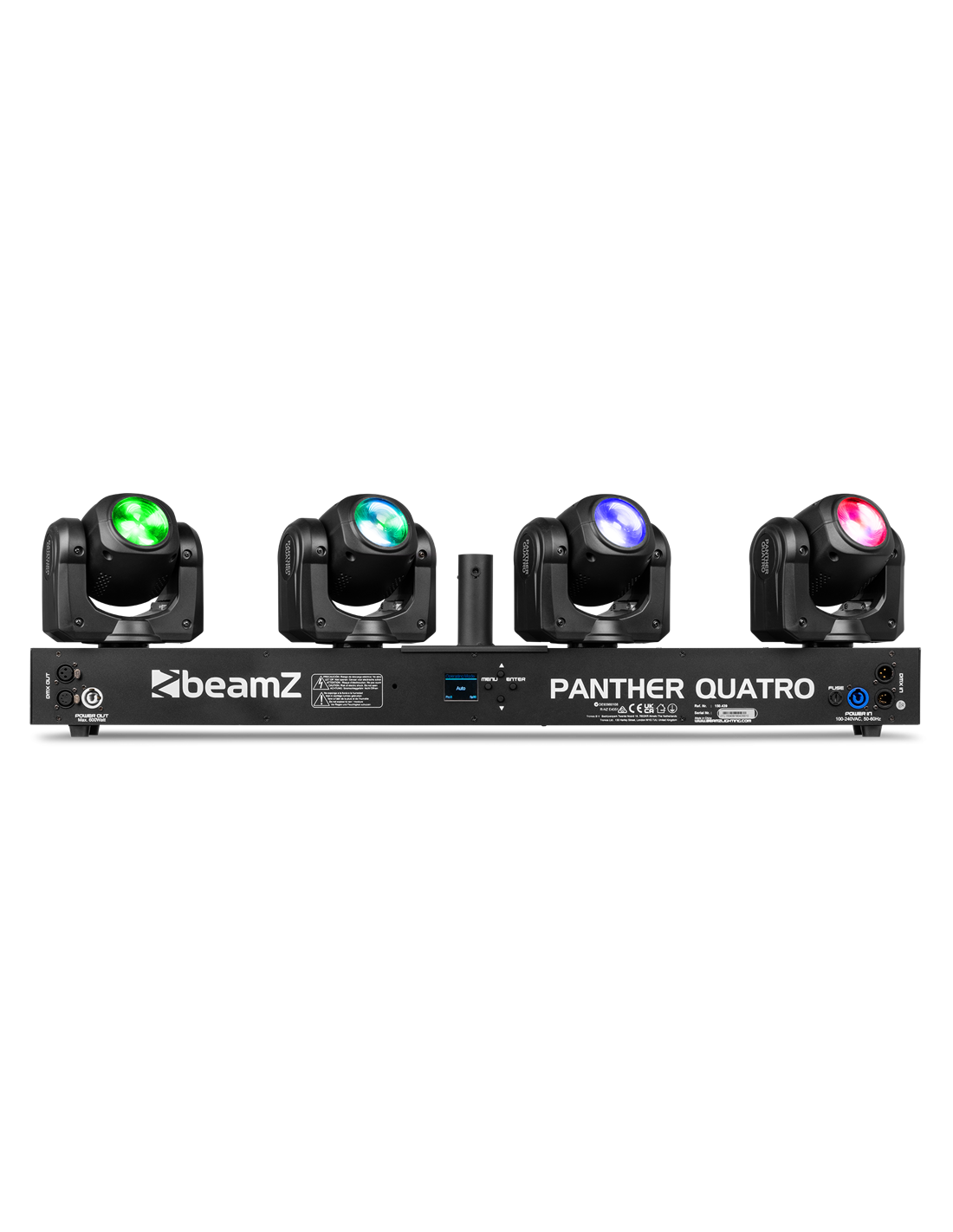 La Panther Quatro Beam Bar es una barra compacta con cuatro cabezales móviles controlables de forma independiente, que garantizan un espectacular show de luces. La barra cuenta con un soporte de poste para colocarla fácilmente en un soporte de iluminación y está equipada con potentes LED RGBW de 40 W que brindan una paleta de colores emocionante. Controlada por DMX, con activación sonora o utilizada en modo autónomo con la función Master/Slave, la Panther Beam Bar es muy versátil y fácil de usar. Perfecto para diseñadores de iluminación, DJ, bandas, discotecas, bares e instalaciones donde el espacio es limitado.