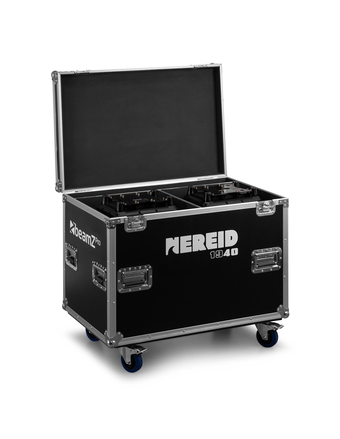 Un kit completo de 2 cabezales móviles Nereid1940 de panel de abeja suministrados en un estuche de transporte sólido y resistente. El Nereid1940 es un potente cabezal móvil wash/beam con zoom lineal motorizado equipado con 19 LED ultrabrillantes 4 en 1 de 40 vatios según la última tecnología. Este cabezal móvil para uso en interiores y exteriores está equipado con lentes con diseño exclusivo de panal y cada LED se puede controlar individualmente para crear efectos sorprendentes. (Efectos Kaleido) También está configurado con motores reductores de ruido extremadamente potentes, lo que permite un movimiento de giro e inclinación ultrarrápido mientras mantiene el ruido al mínimo. Perfectamente utilizable para producciones, eventos e instalaciones de interior y exterior que requieran un mayor rendimiento lumínico.