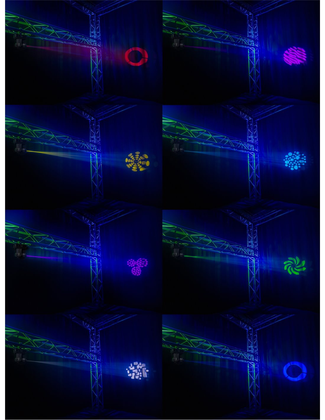 Rueda Gobo: 7 Gobos + abierto, efecto gobo / flujo y sacudida de gobo