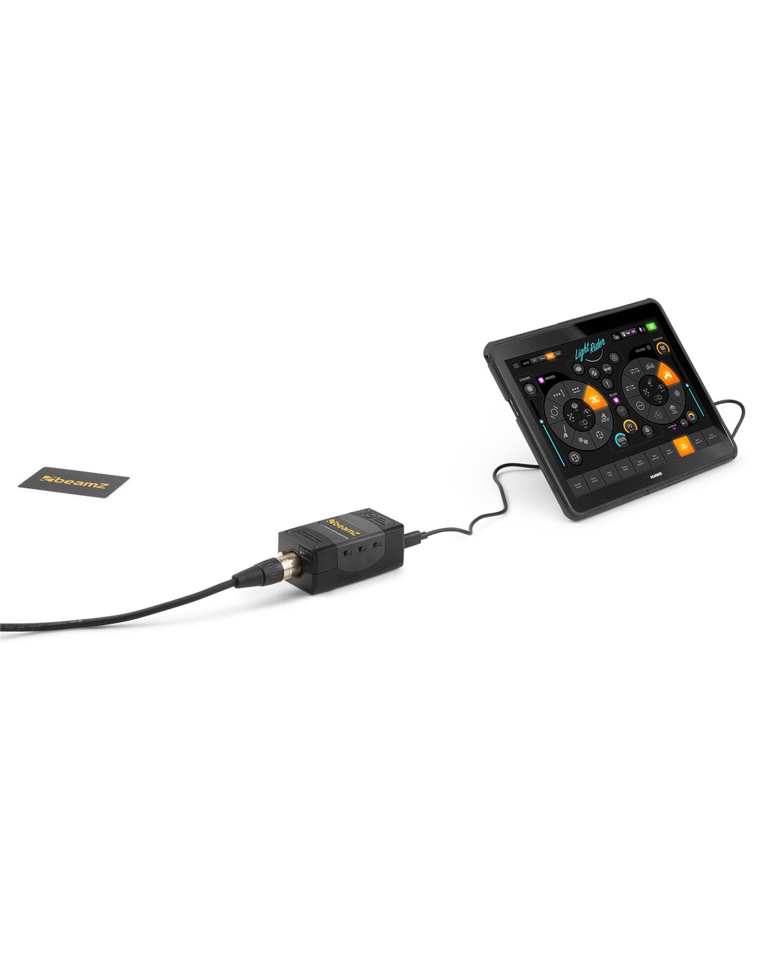 Impulsa tus efectos de iluminación al siguiente nivel con el BeamZ Light Rider/ Easy Stand Alone interface DMX! Este controlador incluye el Light Rider BeamZ Edition para uso en tablet Android y el ESA2 BeamZ Edition en modo express (sin control MIDI ni visualizador 3D). Este interface utiliza hardware SIUDI-9L y es capaz de controlar 128 canales de directo y 12 en autónomo. El número de canales puede actualizarse hasta 512 directos desde la web www.dmxsoft.com.