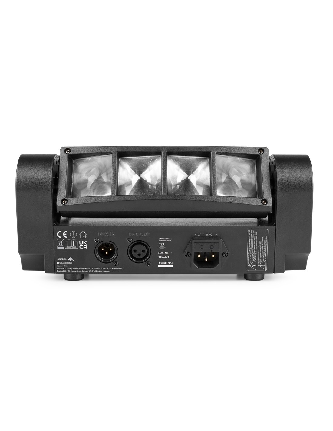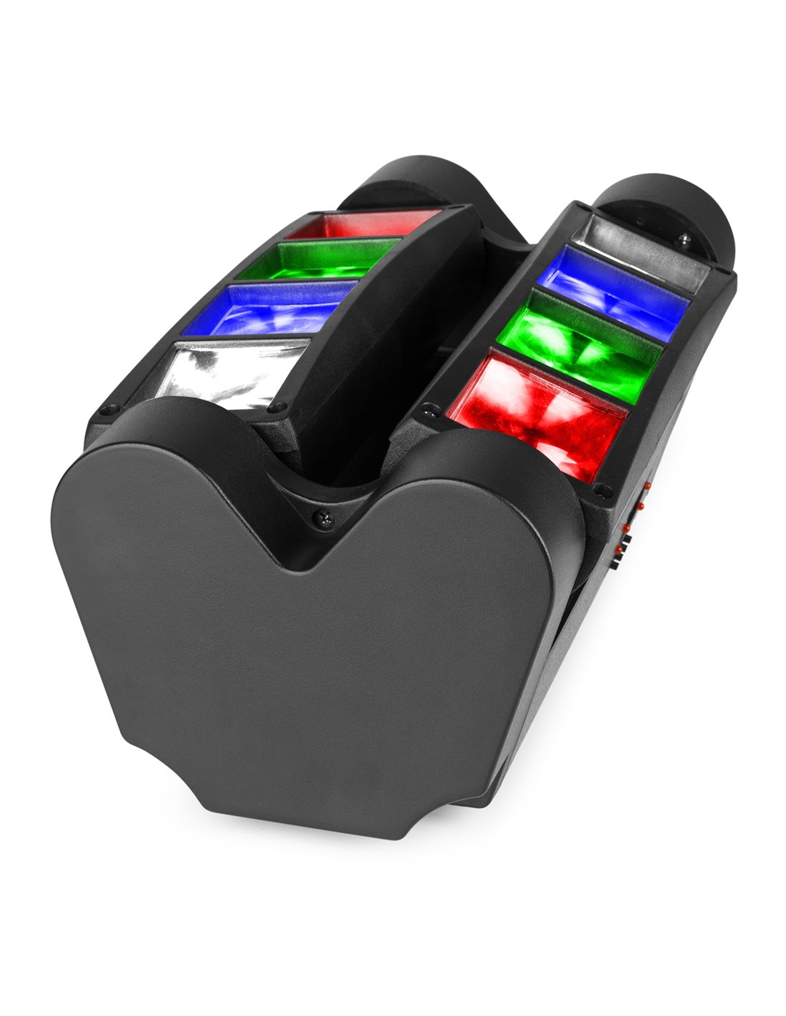El MHL820 doble Helix es un efecto muy popular. Debido a su diseño el MHL820 doble Helix produce una salida potente y de gran extension. Sus 2 salidas separadas con 4x 3W CREE LED giran independientemente creando un efecto impresionante. Ambos canales permiten el efecto strobo. Ideal para frontal de escenario, locales disco, disco movil, etc.