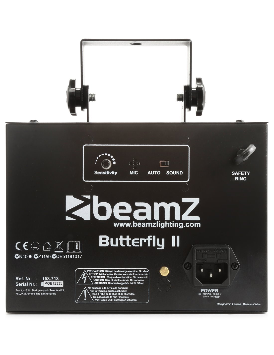 El Butterfly II es una mejora del modelo anterior. Mas LEDs, mas color y mas control. Puedes generar 48 rayos en 6 diferentes colores, hasta un total de 288 rayos unitarios. Todo esto se controla por mando a distancia. Un efecto increible para un DJ novel o pequeños eventos en areas pequeñas.