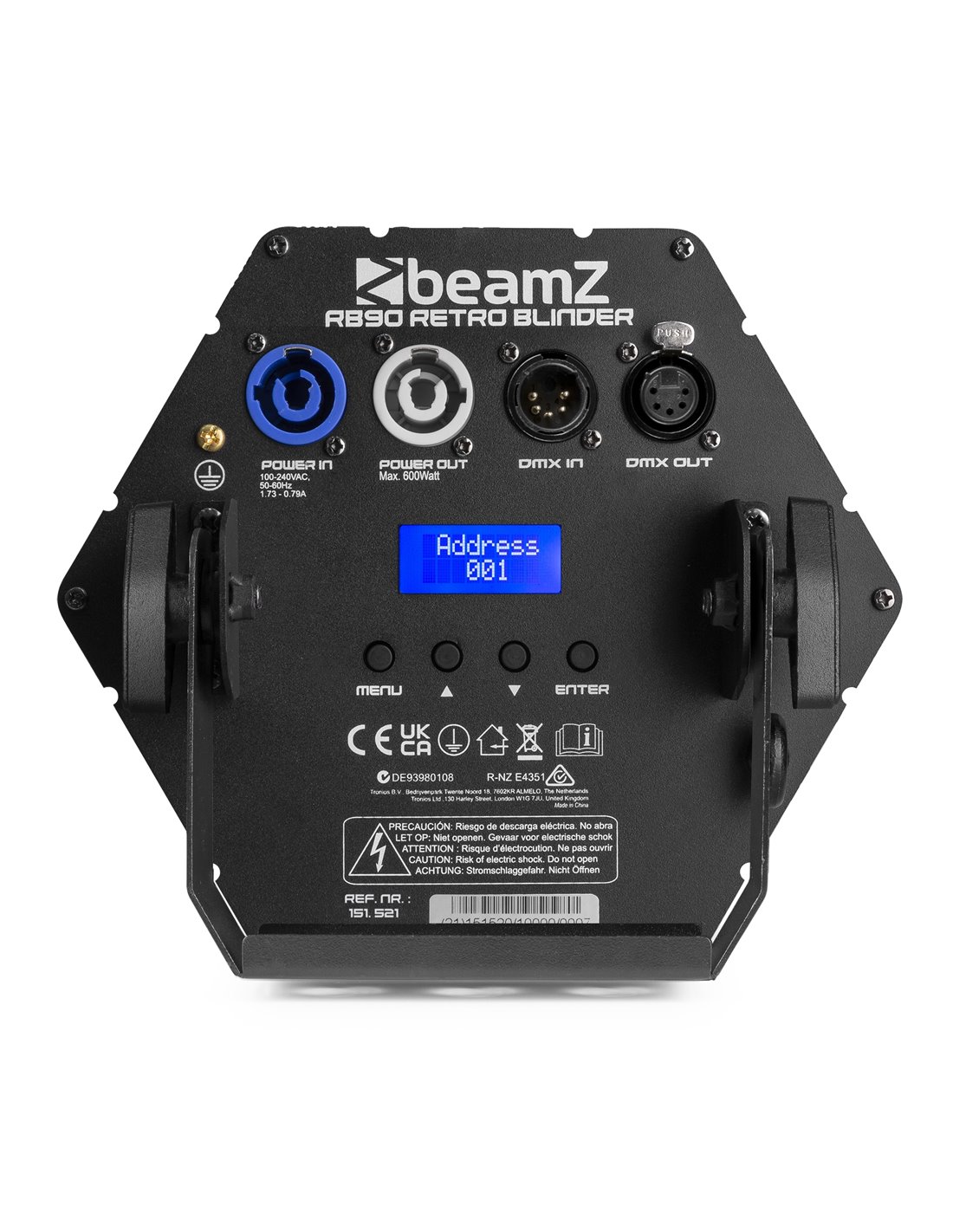 ¡Combina el diseño retro con la moderna tecnología LED! La cegadora Deco Retro es un efecto LED único y elegante que puede emitir una luz muy cálida de color vintage a través de sus 3 LED de alta potencia de 30 W, así como efectos de color RGB a través de los 72 LED SMD adicionales ubicados alrededor del perímetro de su altamente reflectante carcasa interior de aluminio. Cada uno de sus LED COB de color ámbar se puede controlar de forma independiente a través de DMX como un efecto estroboscópico y con una mezcla de colores RGB completa. Este doble efecto retro crea una iluminación vibrante con varios efectos visuales espectaculares.