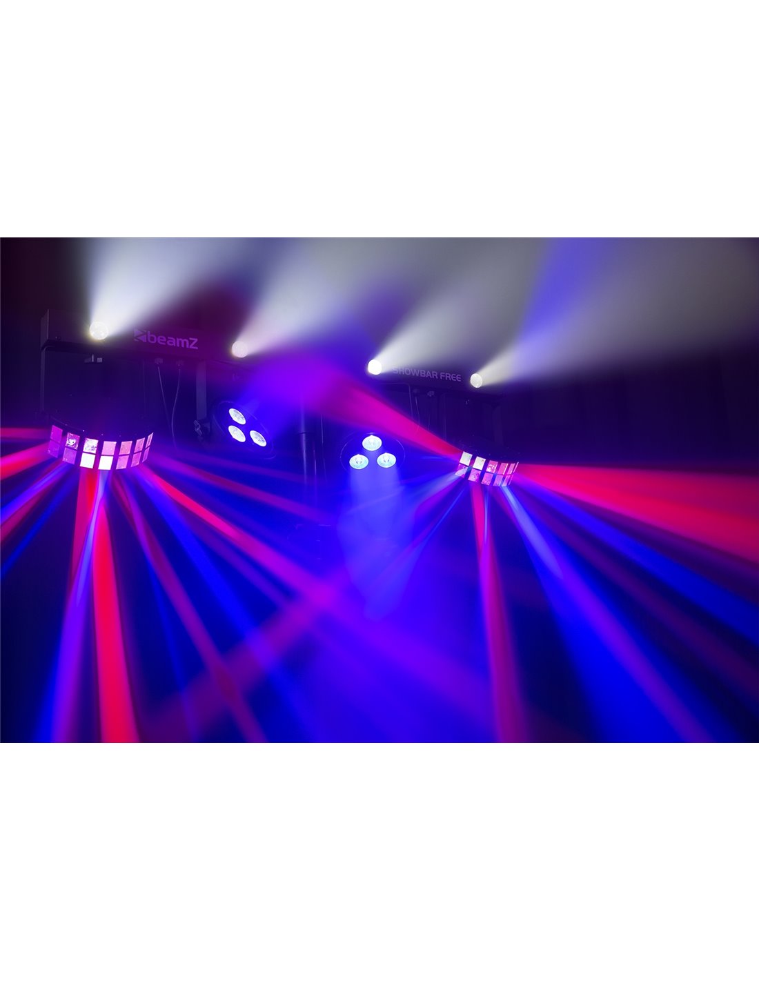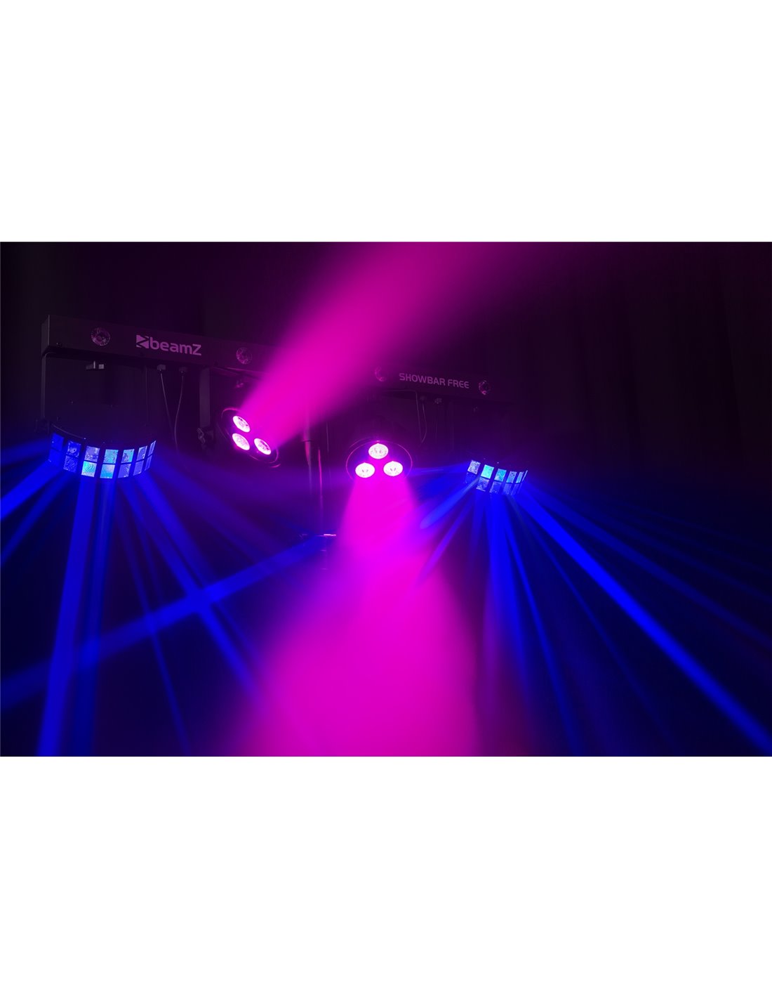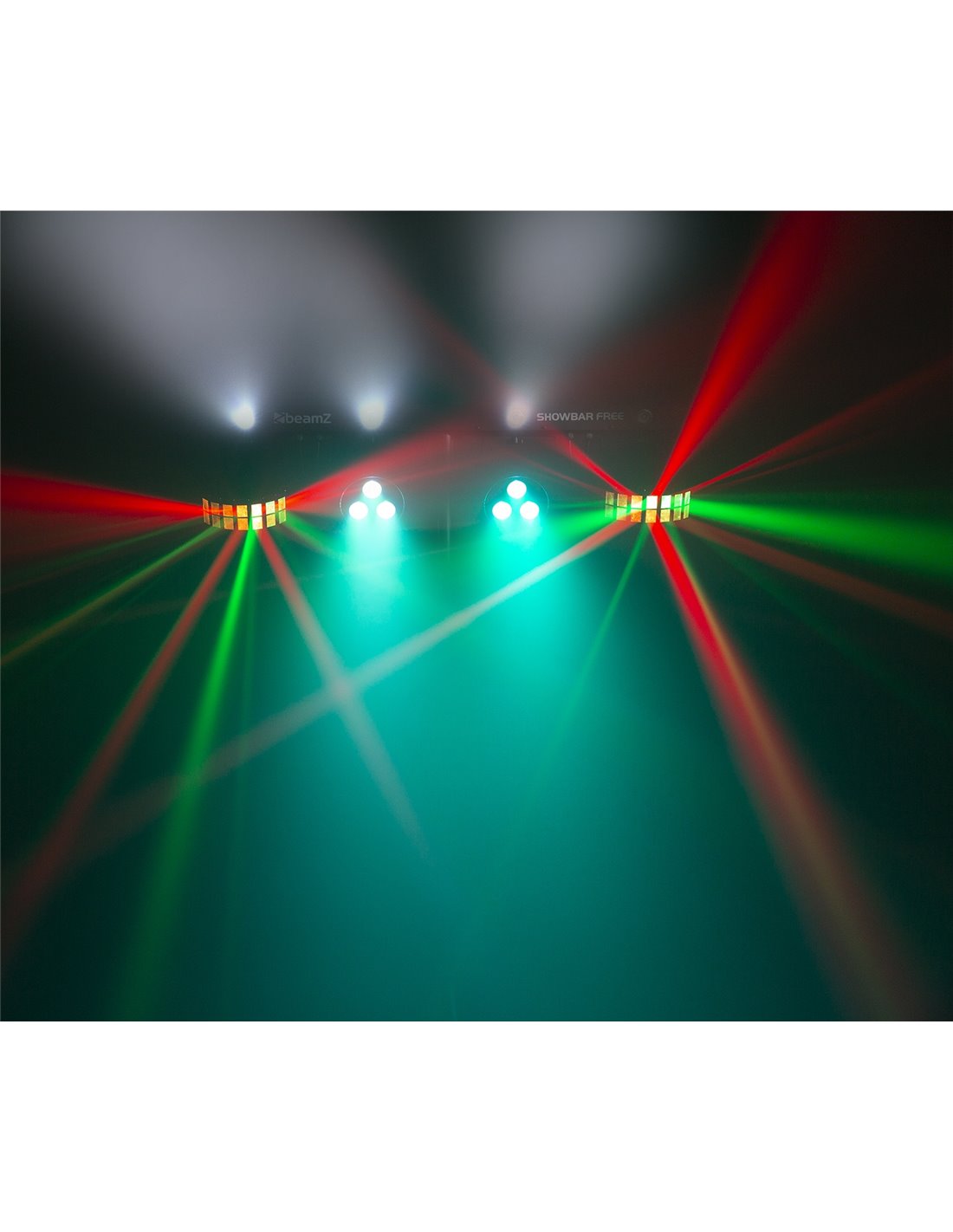 El kit SHOWBAR FREE contiene 2 espectaculares efectos montados en una T-bar con DMX; un par de efectos LED Derby y un par de focos LED Par. La T-bar incluye cuatro LEDs internos de 1W blanco para crear efecto strobo. También incorpora un sensor IR para control a distancia. Se pueden linkear multiples unidades con conector IEC y DMX. El SHOWBAR se puede montar sobre tripode de 38mm.