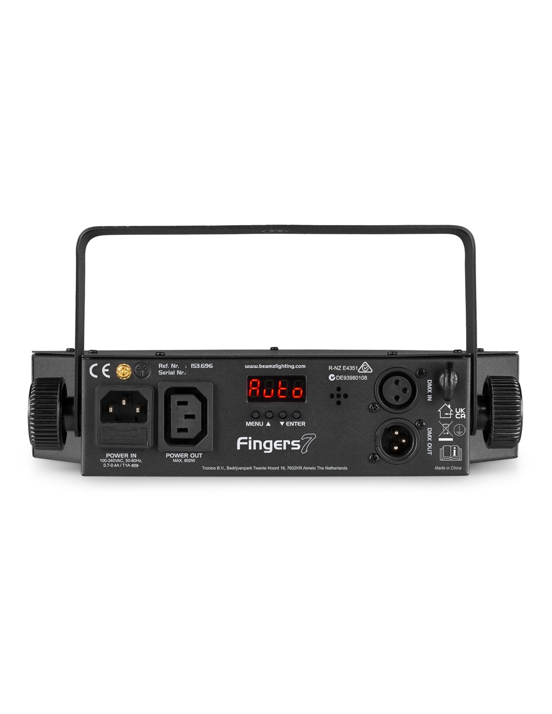 Las 7 lentes del Finger7 producen una gran variedad de haces que cubren una pista de baile o un techo de tamaño mediano a grande, con un peso muy bajo. El dispositivo utiliza 7 LED de alta potencia RGBW de 8 W y se activa por sonido, mientras que el modo automático también está disponible. Debido al bajo consumo de energía y al uso de LED, el Fingers7 no necesita enfriarse después de largos períodos de uso y, por lo tanto, es fácil de transportar.