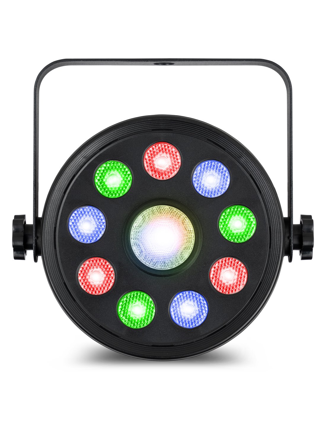 9 LED de 2 W en anillo (3 rojos, 3 verdes y 3 azules)