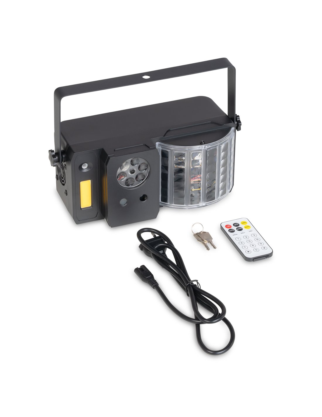 Efecto 5 en 1 con proyector de gobos, efecto mariposa LED, luz estroboscópica y efecto patrón doble