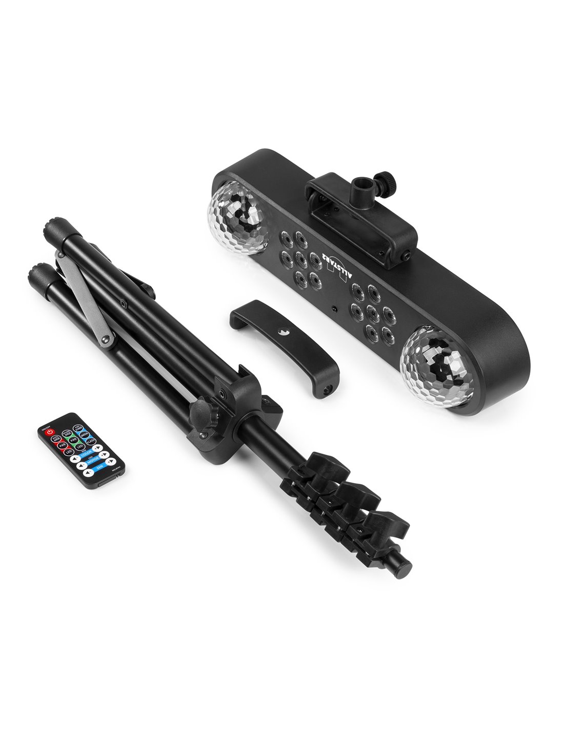 La música, la comida, la gente.... ¡ya estás a mitad de camino de una gran fiesta! Pero, ¿qué puede hacer una fiesta aún más inolvidable? ¡El AllStar2 Party Bar eleva la atmósfera de cualquier ocasión a un nivel aún más alto! Las opciones son infinitas, con el mando a distancia puedes cambiar infinidad de colores, diferentes efectos de luz y su velocidad. También puede elegir entre un espectáculo preprogramado o para la activación de sonido a través del micrófono incorporado. ¡Este Party Bar que incluye un soporte de pie es exactamente lo que necesita para que su fiesta sea un éxito!