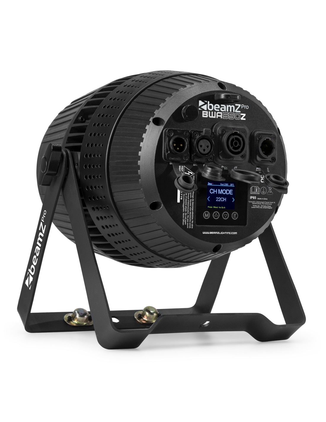 El BWA550Z es parte de una serie de luminarias Pro LED PAR de nueva generación diseñadas para diversos fines, como iluminación escénica y arquitectónica. Este Pro PAR robusto y resistente a la intemperie se puede controlar mediante diferentes configuraciones DMX en 3 zonas LED controlables separadas. ¡El PAR cuenta con 19 módulos LED con lentes grandes, lo que le brinda la posibilidad de mezclar cualquier color! El BAC550Z también tiene una lente de zoom motorizada que permite al dispositivo crear fantásticos efectos de haz o baño de color. La salida P-Con adicional le permite conectar fácilmente la alimentación de varias unidades a una sola toma de corriente.