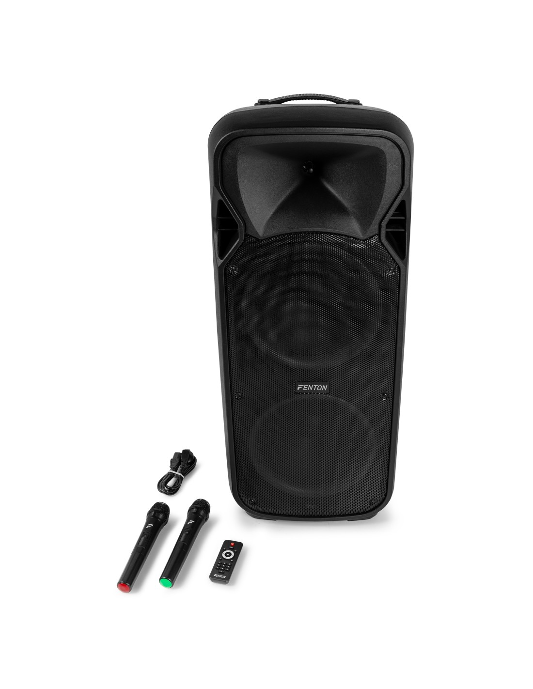 Bafle activo completo de 1400W con conectividad BT. Este altavoz es ideal para pequeños eventos, presentaciones o fiestas de escuela.Con el uso del receptor BT para audi streaming de tu musica desde smartphone o tabet. El bafle incorpora 2 micrófonos inalámbricos con volumen independiente y echo, y una entrada aux para conectar cualquier CD o un portatil para maxima conectividad.