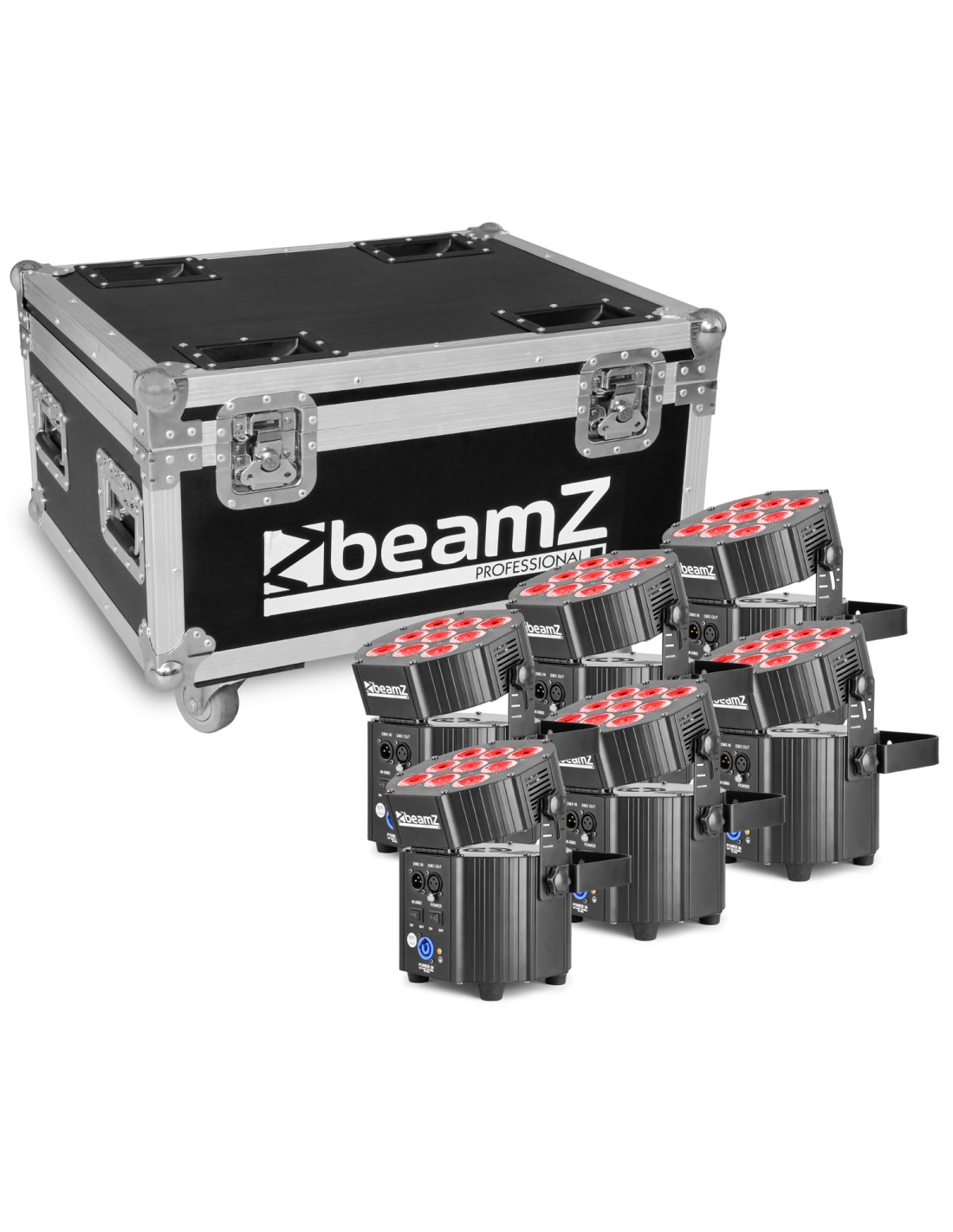 Un kit completo de 6 focos BBP60 en un flightcase con cargador de baterias incorporado. Cada BBP60 tiene una bateria de 25Ah que permite un funcionamiento de hasta 10 horas con un solo ciclo de carga. Cuando se acaba el evento simplemente coloque los focos de nuevo en el flightcase para su carga y los tendra a punto en solo una noche de recarga. Cada unidad tiene un conector especial de carga en la parte inferior que conecta directamente en el flightcase. Simplemente conecta el flightcase a la alimentacion y eso es todo. El conjunto incluye tambien un transmisor inalambrico de DMX para que tus focos con bateria y conexion inalambrica no necesiten de nada mas. El precio incluye 6 focos en un flightcase y el emisor DMX.