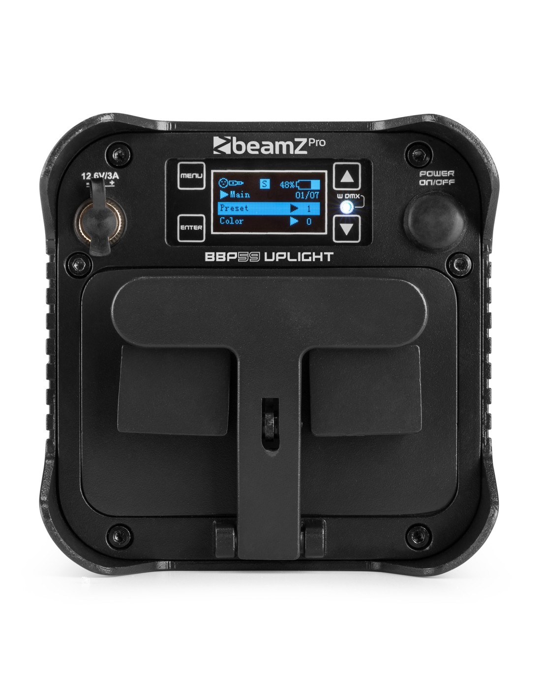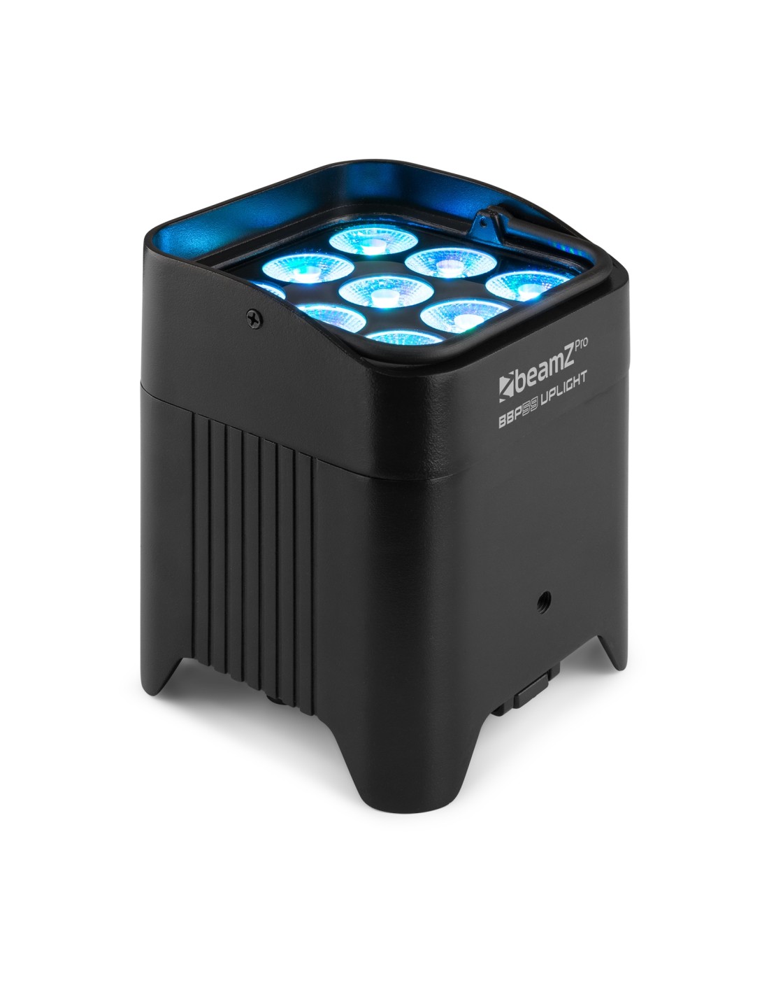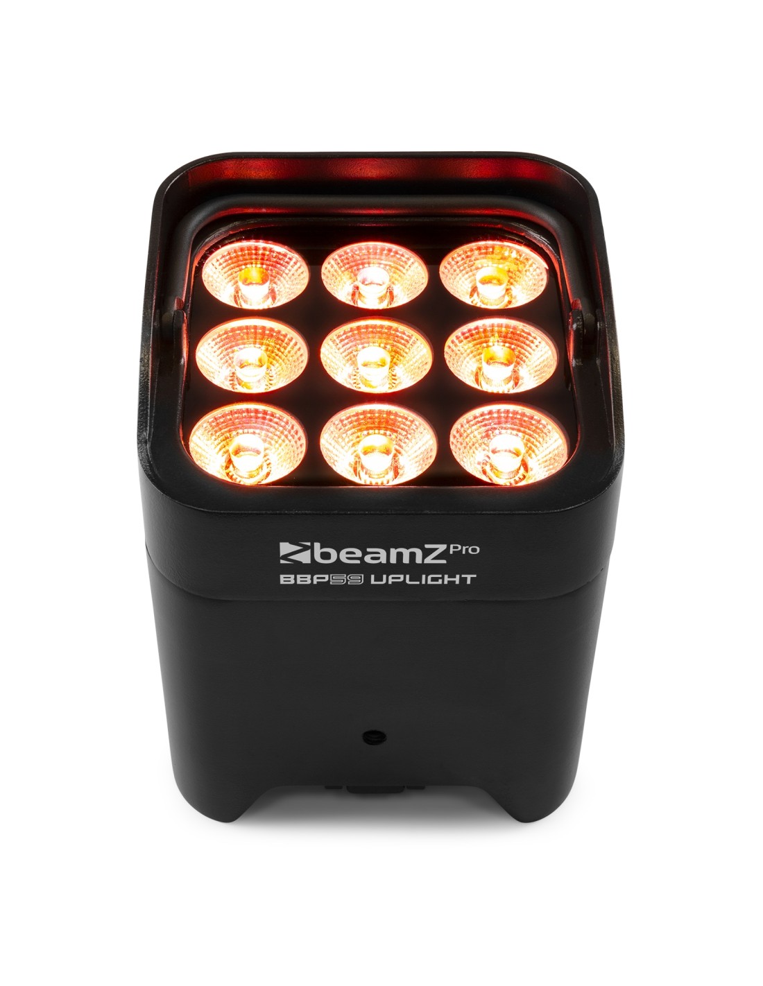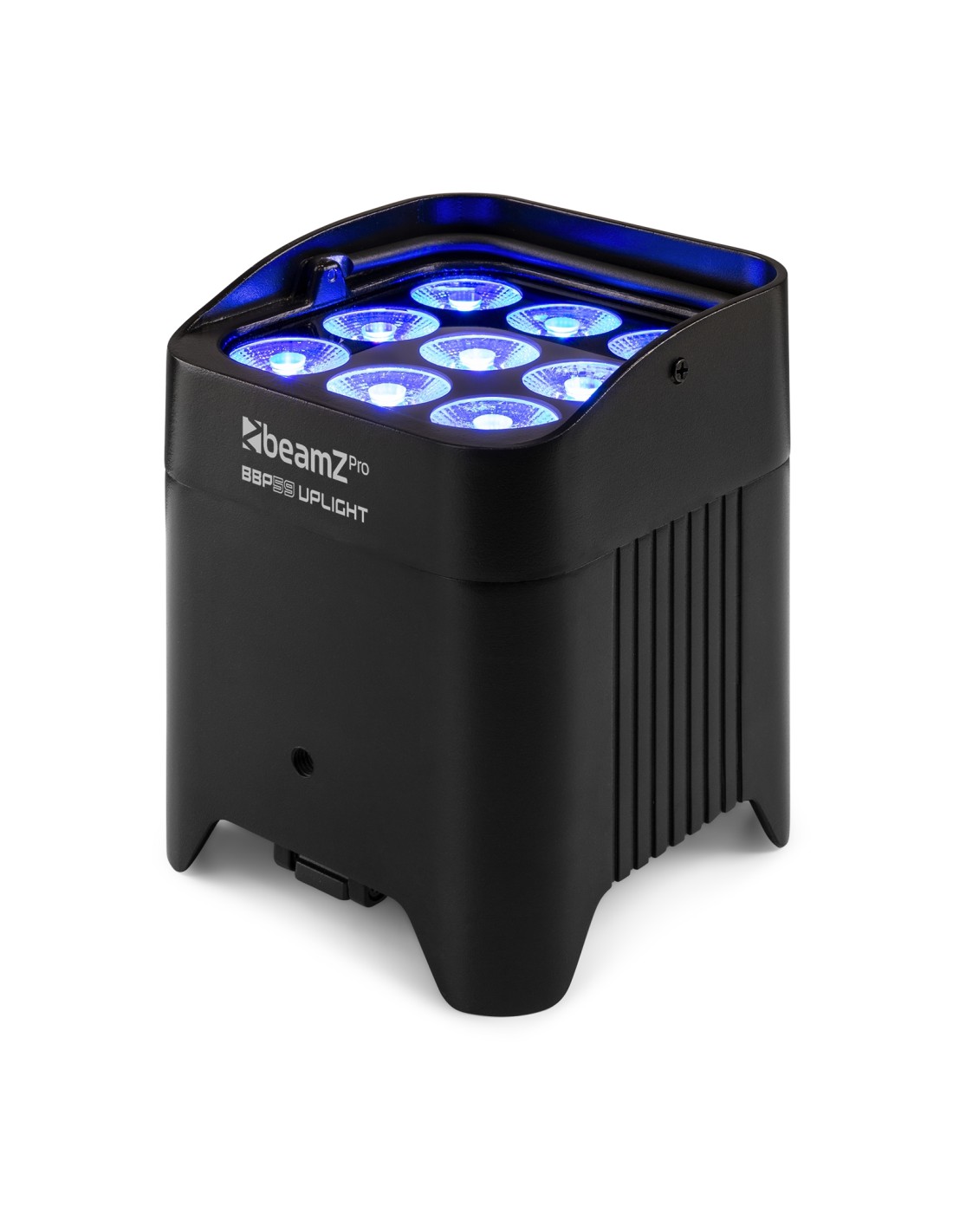 El BBP59 es un foco Par compacto con batería ideal para iluminar paredes o acentuar elementos. El BBP59 es IP65 para trabajar en interior y exterior. Está equipado con 9x LEDs de super brillo 12W RGBWA-UV y batería reemplazable interna que permite trabajar hasta 18 horas con carga completa, dependiendo de colores e intensidad. Su pie ajustable permite fijar la unidad en diferentes ángulos. El BBP59 puede controlarse por varios canales, con mando IR y DMX inalámbrico. Esto facilita la interconexión entre unidades.
