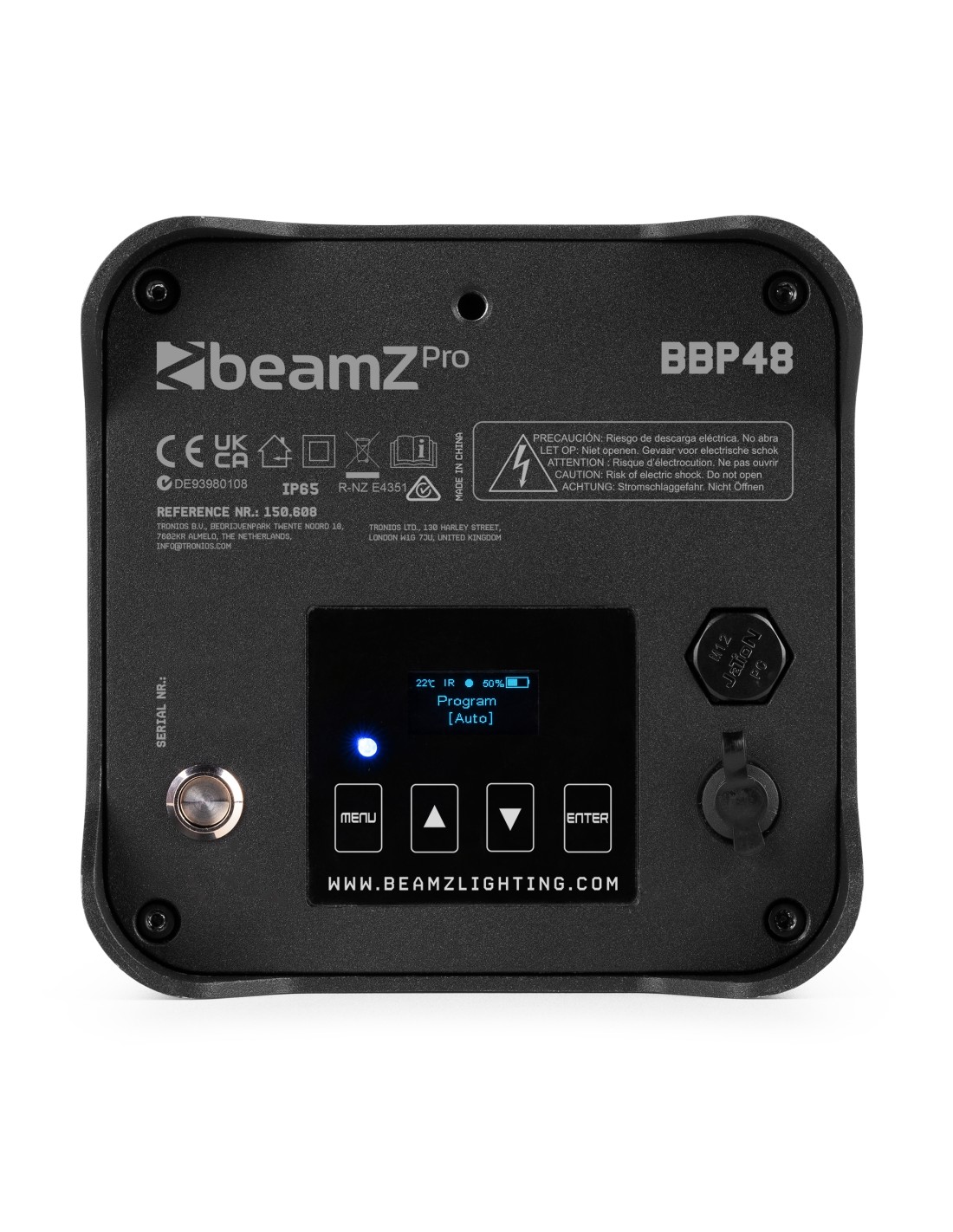 El BBP48 es un foco par de batería compacto ideal para usar como iluminación ascendente. El BBP48 tiene clasificación IP65 y, por lo tanto, es apto para uso en interiores y exteriores. Está equipado con 9 LED RGBAW-UV de 12 W superbrillantes y viene equipado con una batería fija incorporada que durará hasta 18 horas cuando está completamente cargada, dependiendo de los colores y la intensidad. El pie ajustable se puede fijar en diferentes ángulos para la colocación angular del par. El BBP48 puede comunicarse de diversas formas, con DMX y DMX inalámbrico. Esto hace que las unidades sean fáciles de conectar entre sí.