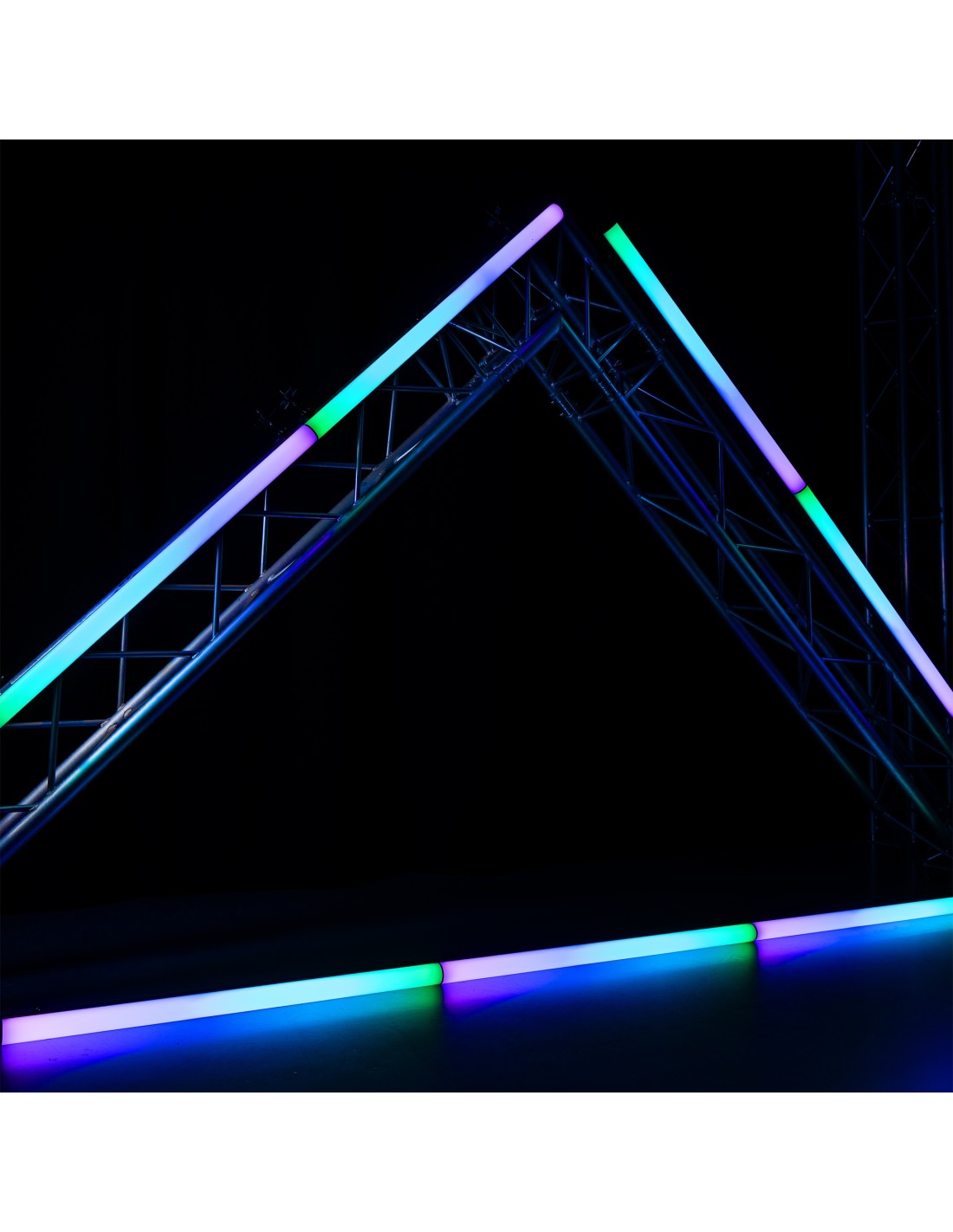 El tubo/barra con batería Zeus destaca en la gama de barras LED gracias a sus características avanzadas y su diseño versátil. Esta combinación de tubo/barra se puede utilizar como barra LED montada en truss o como tubo vertical utilizando el soporte de suelo plegable incluido. Gracias a la mezcla de colores RGBW LED (CW/WW), el tubo/barra Zeus te da un control total para crear el ambiente perfecto para cualquier entorno. Cada tubo/barra se puede controlar de forma independiente, lo que facilita la creación de diseños de iluminación complejos. Diseñado para ser flexible, el tubo/barra Zeus, ligero y duradero, es ideal tanto para exteriores como para estudios, gracias a su batería incorporada. Mejore la creatividad de sus proyectos, ya sean comerciales o actuaciones en vivo, con efectos especiales cautivadores que dejarán una impresión duradera.