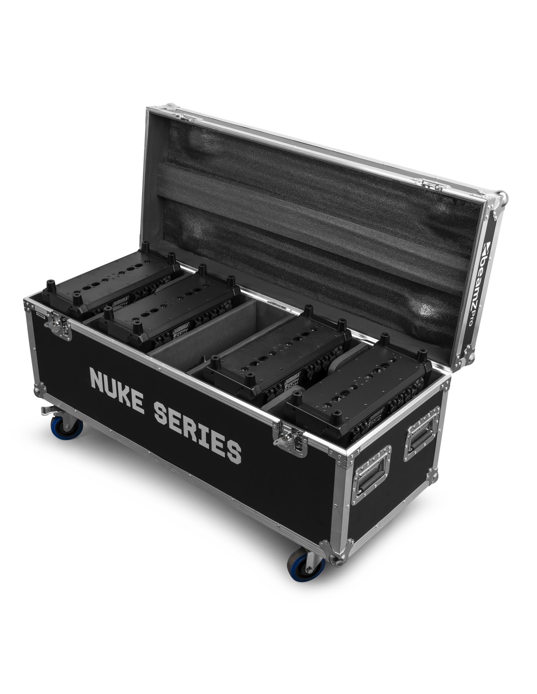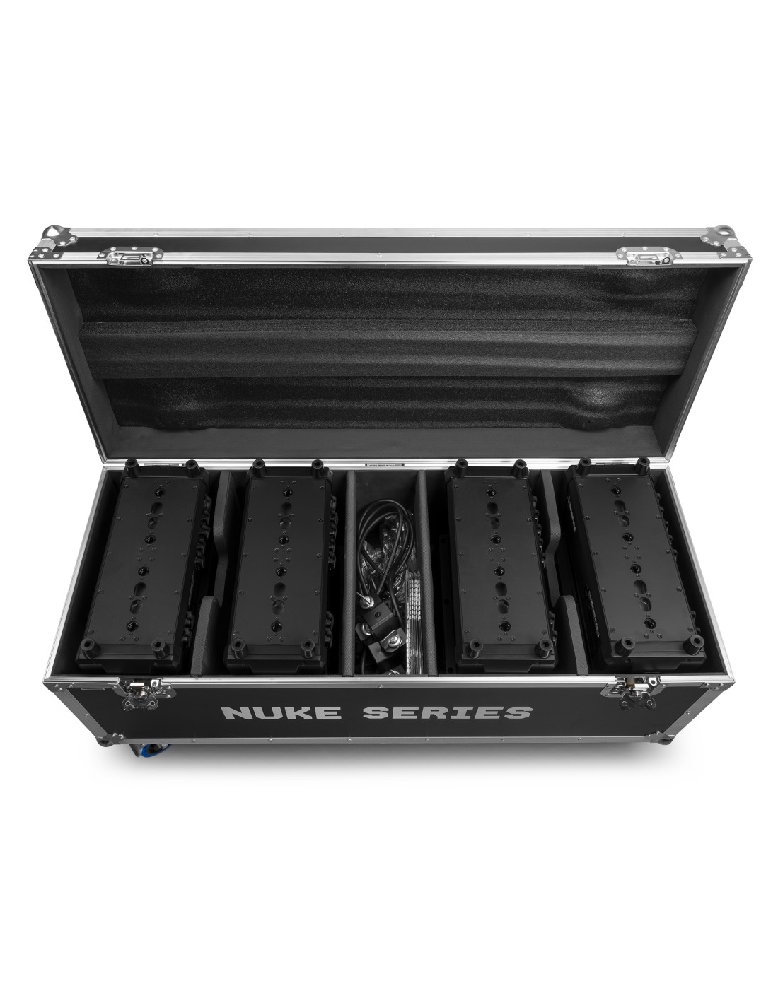 Flightcase para transportar y usar 4 piezas NUKE de forma segura y compacta. Protección extrema contra colisiones, abrasiones, impactos, etc.