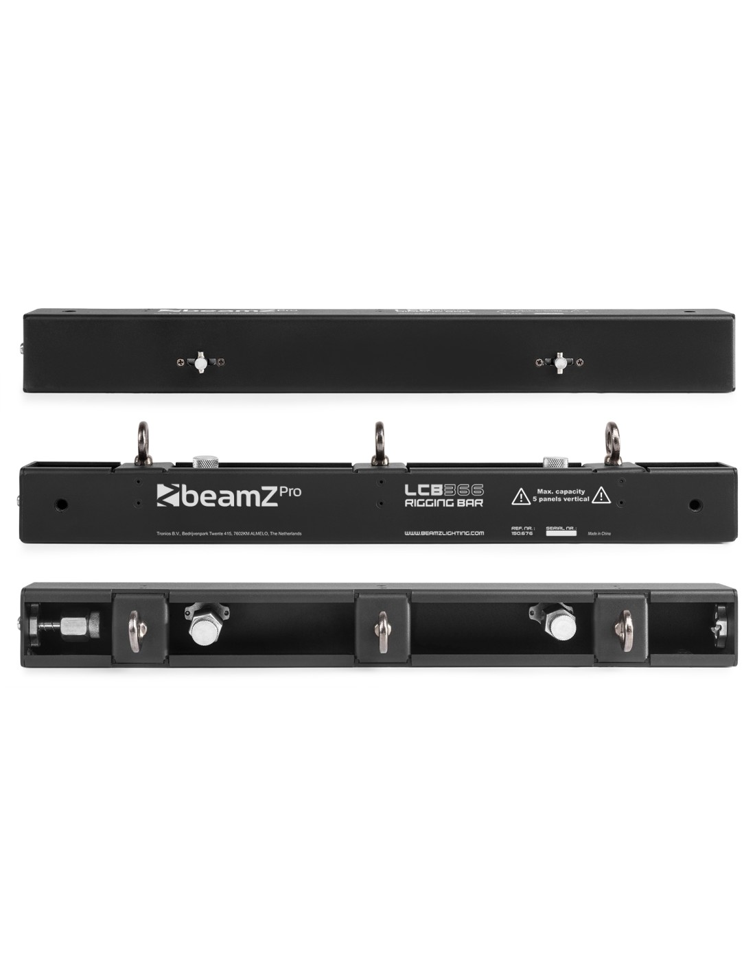 Barra metálica rígida con 3x M10 puntos para volar y cierre rápido para juntar a más barras de forma horizontal para una cómoda y rápida instalación.