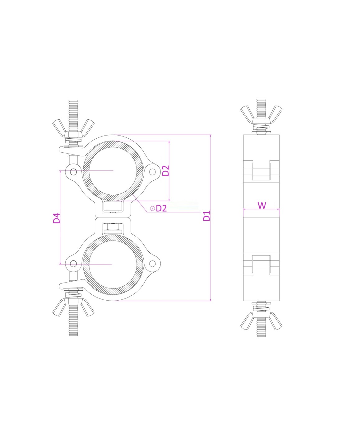Garra giratoria de acoplamiento universal compacto de aluminio slimline para montar equipos en tubos y truss. Esta garra ofrece ademas de una firme sujeccion, la posibilidad de girar 360 grados.Fabricado en aluminio de alta resistencia.