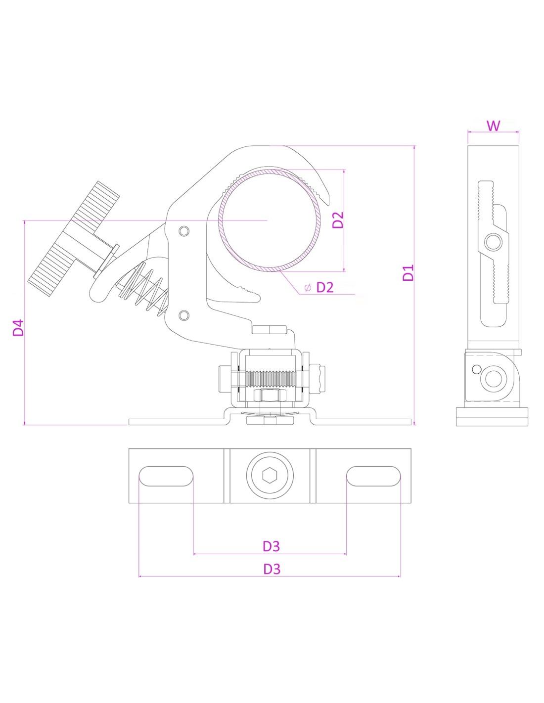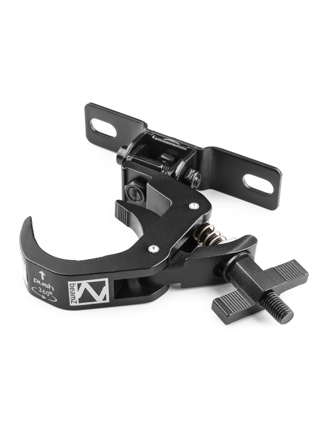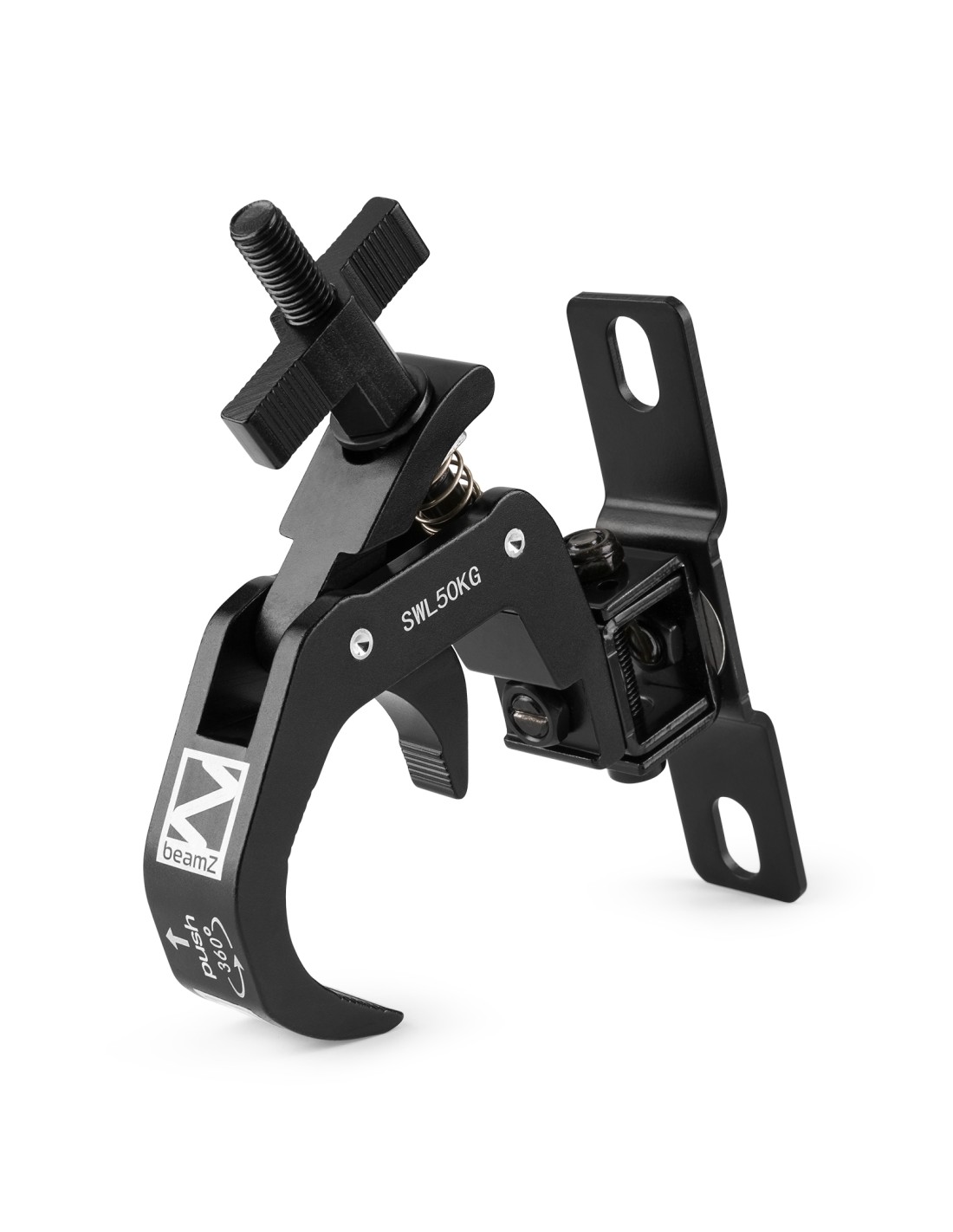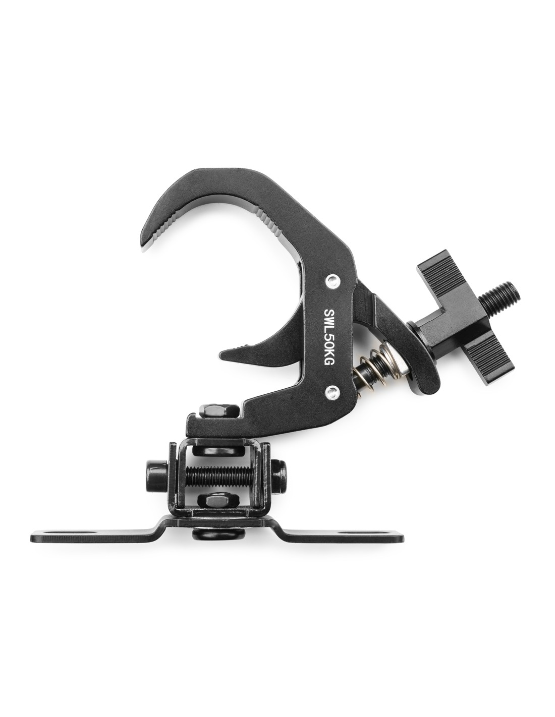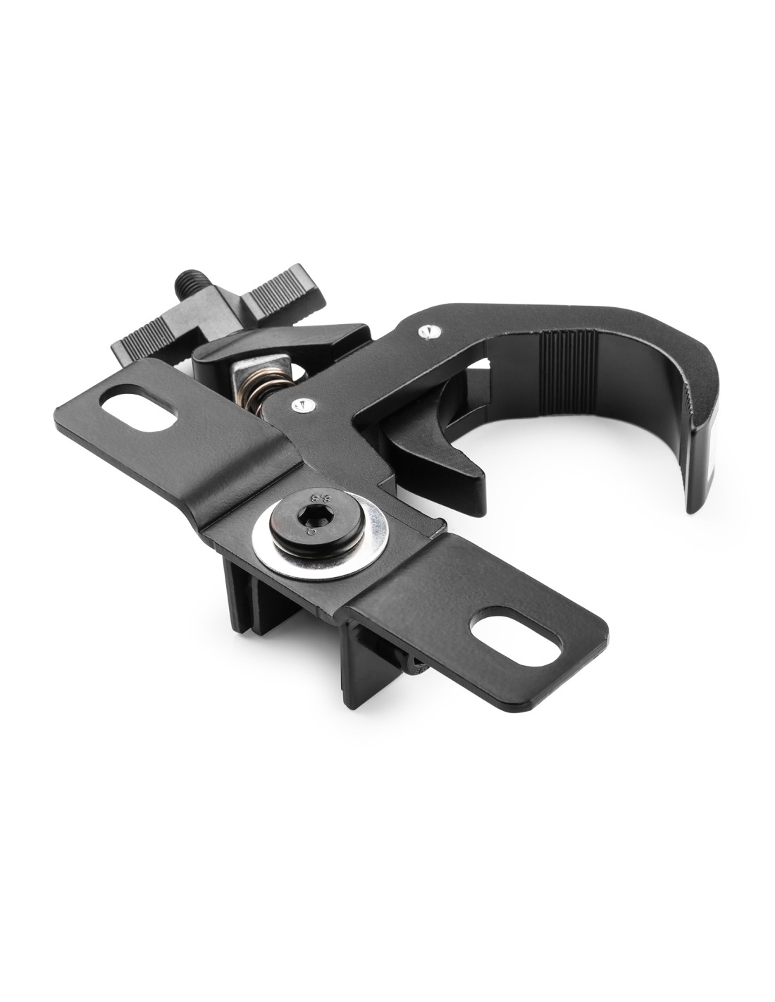 La abrazadera universal para cabeza móvil con sistema de liberación rápida permite transportar cabezas móviles con abrazadera montada en cajas de transporte gracias a su exclusivo sistema de inclinación. Estas abrazaderas son adecuadas para la mayoría de los modelos de cabeza móvil, están hechas de aluminio fundido a presión y son fáciles de montar en varios sistemas de tubos y trusses. Equipado con un mango seguro y ergonómico.