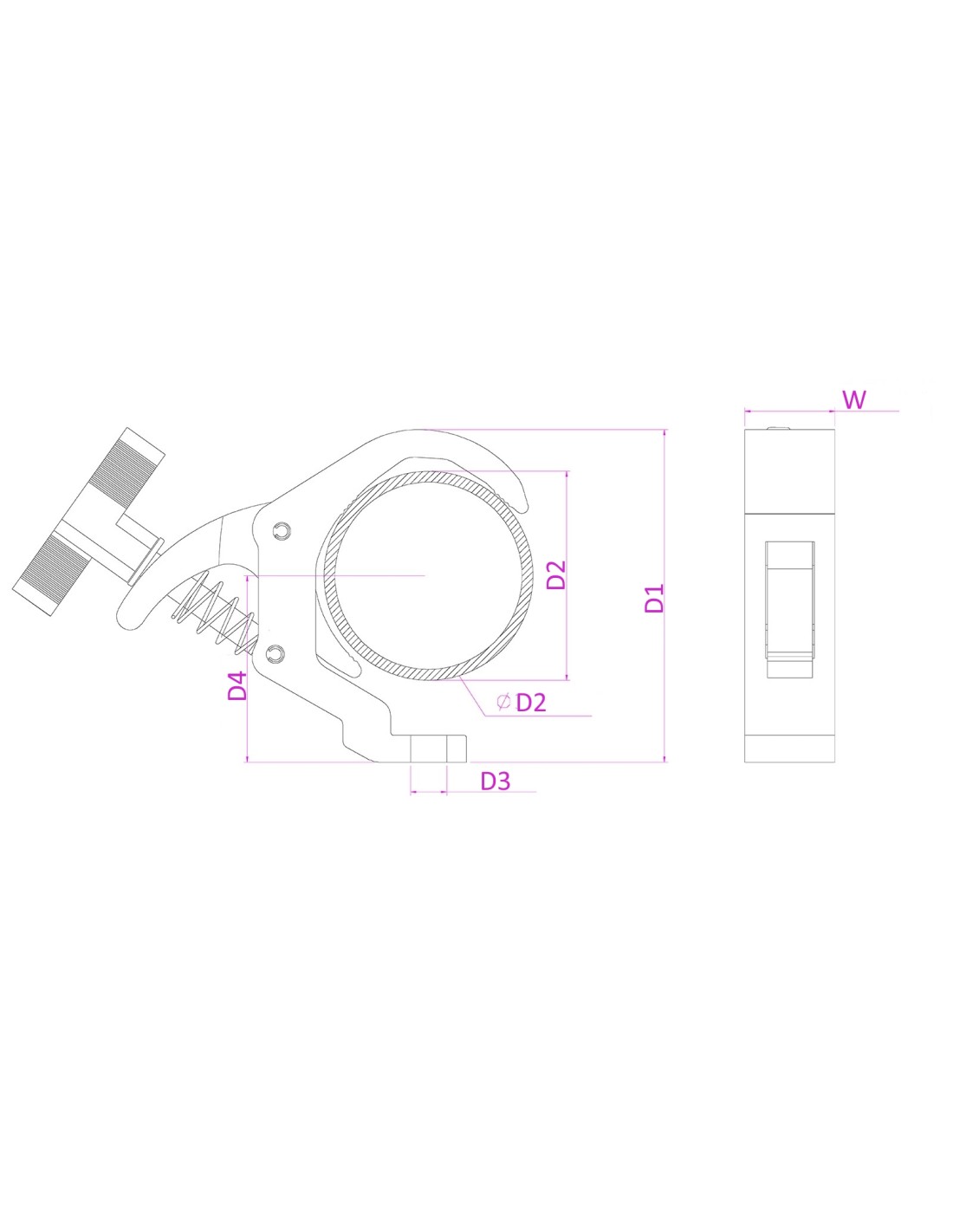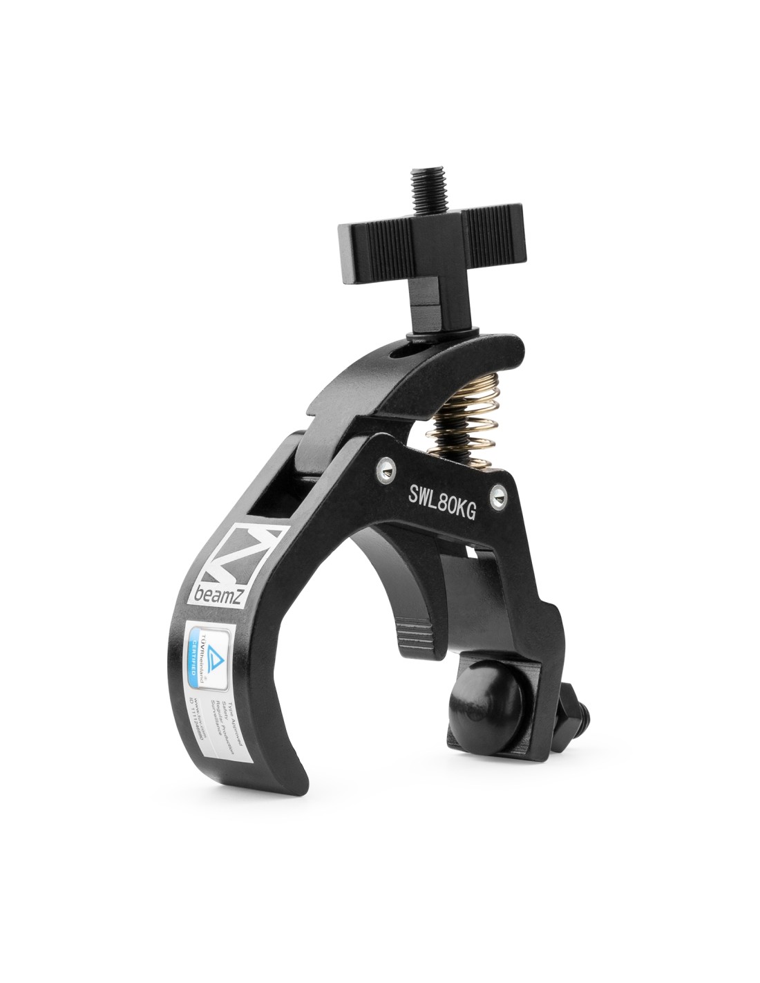 Esta garra gancho esta fabricada en aluminio fundido y se utiliza para montar equipos en tubo y truss. Gracias a su gran apertura puede usarse en multitud de sistemas de tubo distintos. El acceso de la garra en gancho esta situado en posicion horizontal permitiendo al usuario asegurar la unidad facilmente en el brazo del truss. Su forma ergonomica protege al usuario de dañarse la mano con el tornillo de fijacion.