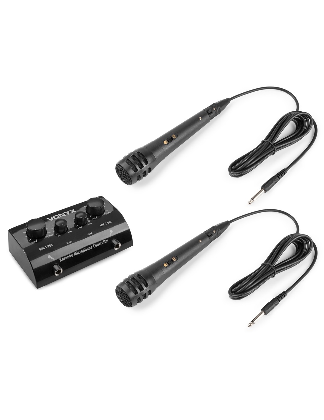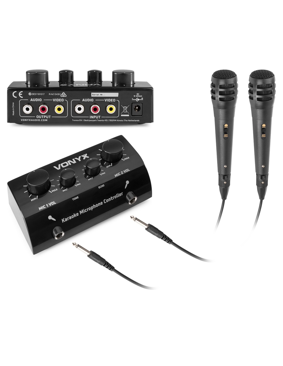El Vonyx AV430 es un sistema compacto de karaoke doméstico diseñado para enchufar y que funcione en cualquier sistema de Hi-Fi. El kit incluye 2 micrófonos con cable y todos los cables de conexión necesarios. Lo que necesitas para hacer una noche de karaoke en casa!