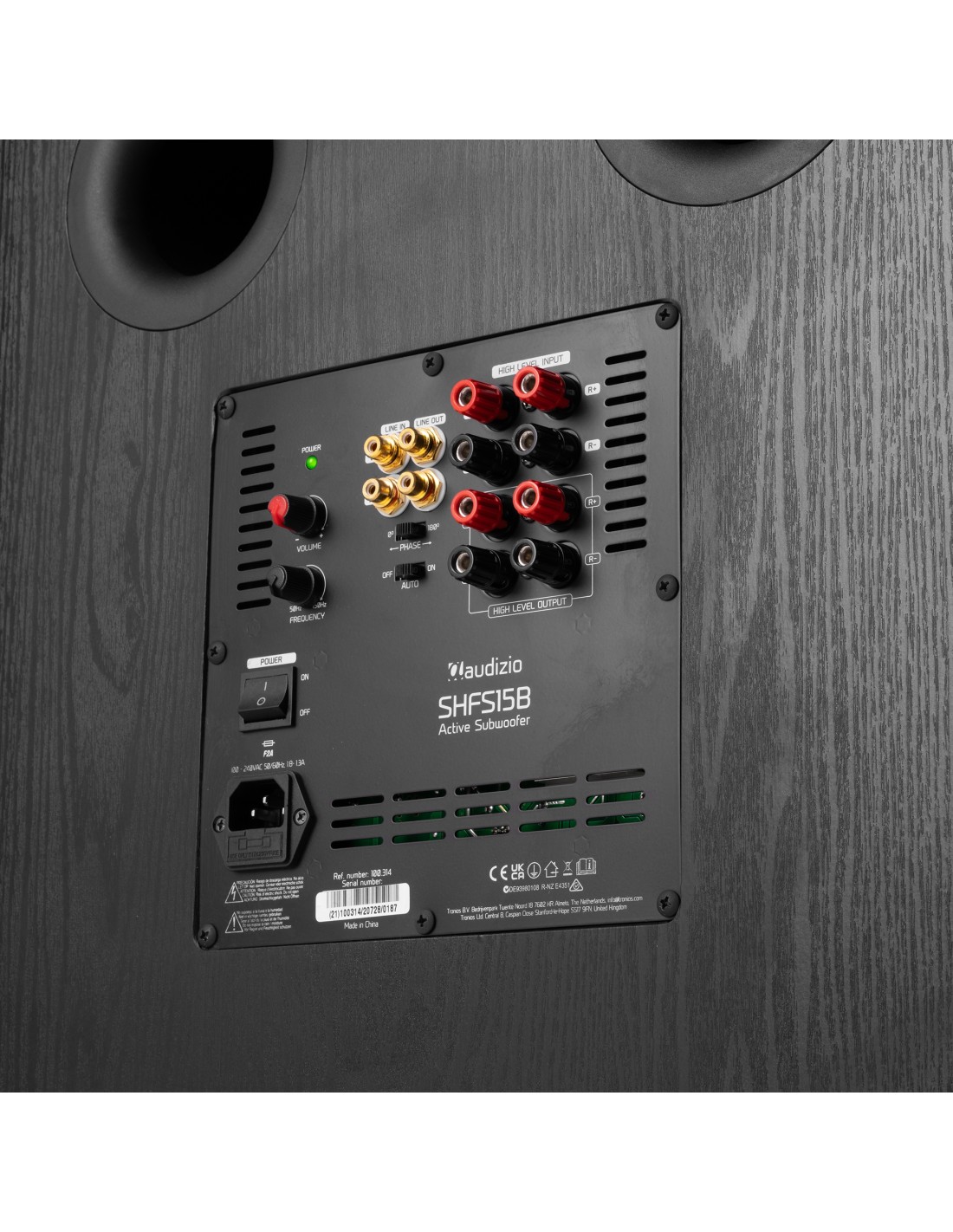 El SHFS15B es un subwoofer amplificado con una etapa de 500 Watios y un woofer de largo recorrido de 15”. La frecuencia de corte es adjustable entre 20 ~ 200Hz. El subwoofer se encarga de reproducir las frecuencias que los altavoces del Sistema no pueden. Se puede seleccionar la Fase entre 0° o 180°. La entrada RCA o los terminals de altavoz permiten su conexión a un receptor o a un amplificador. Acabado en vinilo Negro.