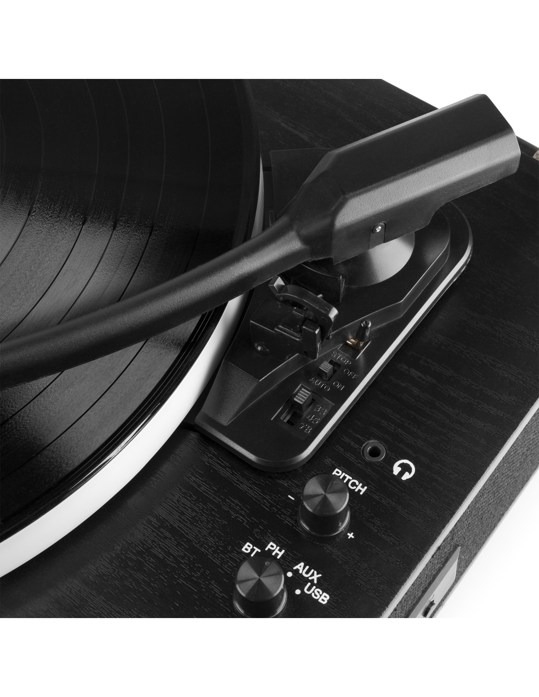 3 velocidades para discos de 33 1/3, 45 y 78 RPM, incl. adaptador