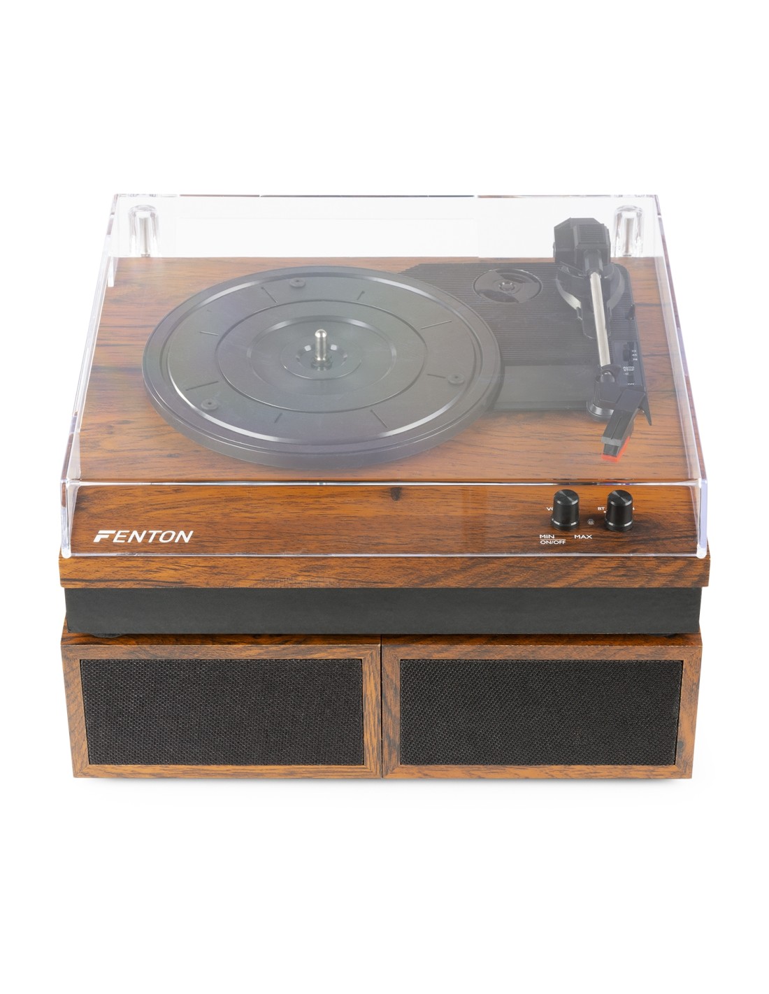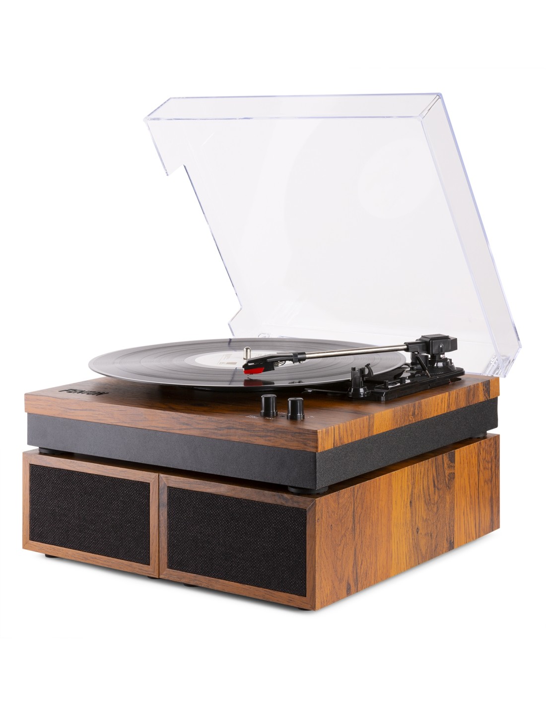 El Fenton RP165 con BT es un reproductor de diseño simple y elegante que incorpora amplificador integrado. Reproduce tus vinilos con gran calidad ajustando el volumen de los dos altavoces incorporados. Estos altavoces estereo de 50 watios reproducen la musica de tus vinilos (33 1/3, 45, 78 RPM) o tu musica a traves de BT desde cualquier dispositivo habilitado.