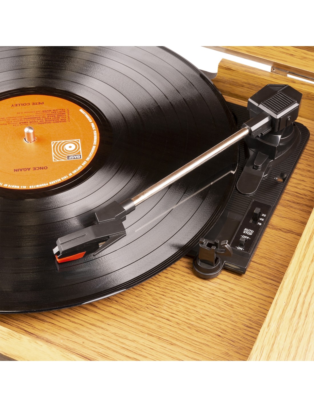 3 velocidades para discos de 33 1/3, 45 y 78 RPM, incl. adaptador
