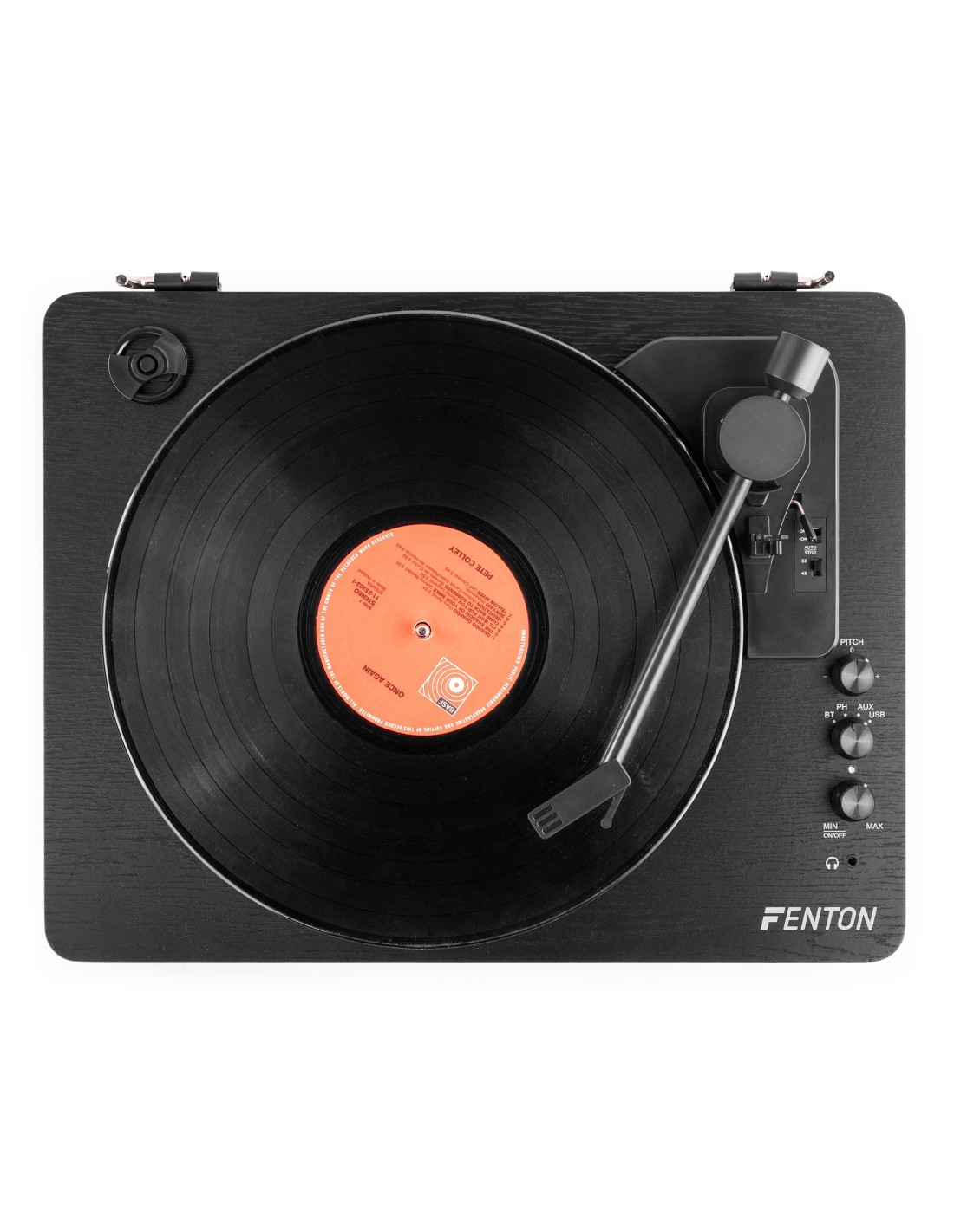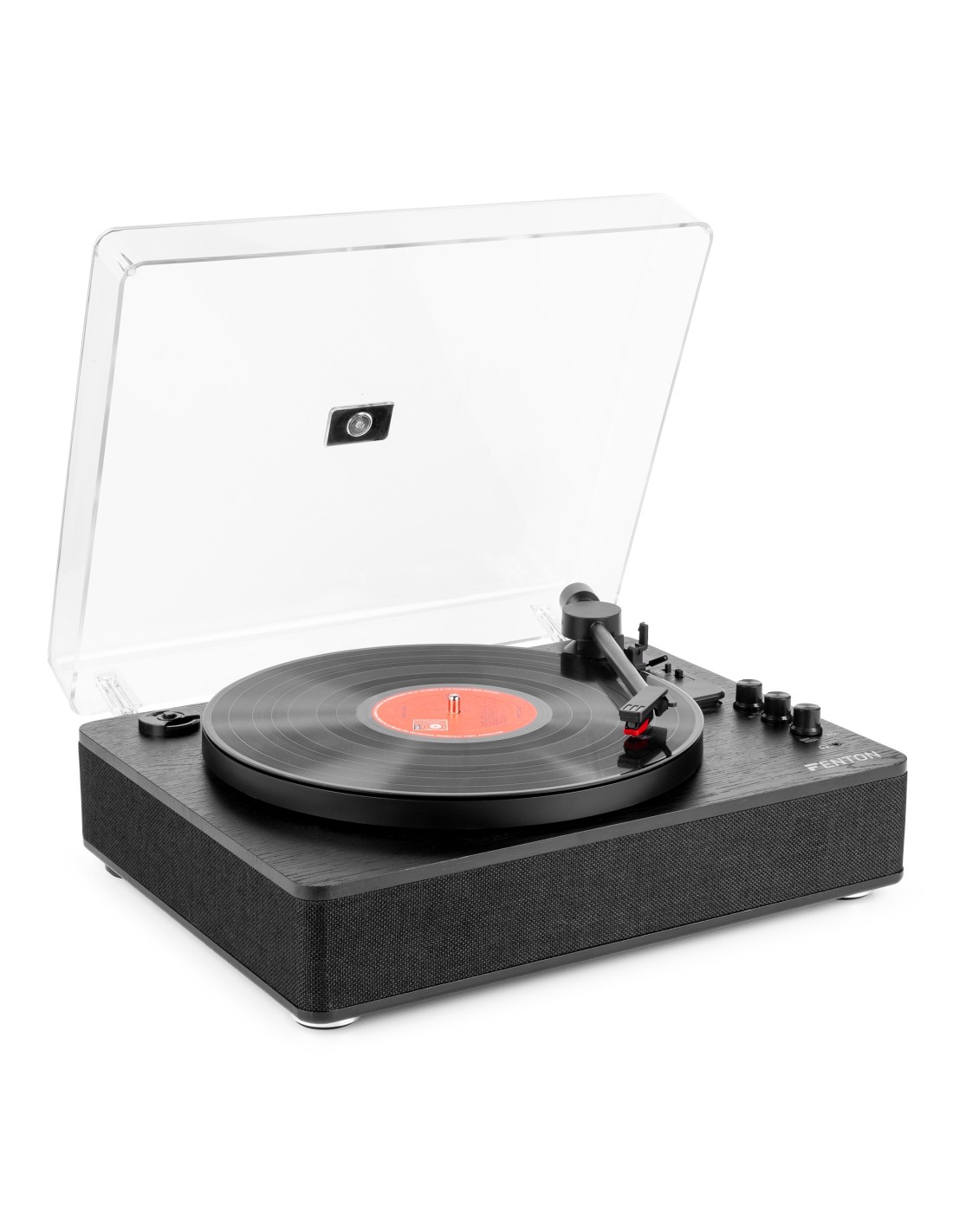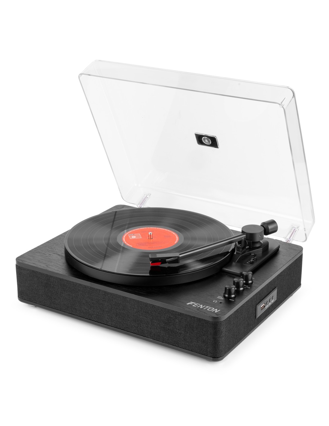El reproductor Fenton RP162 es un tocadiscos clásico con un receptor BT para transmisión y un puerto USB. Puede grabar sus discos de vinilo directamente en una memoria USB a través del puerto USB. El receptor BT permite escuchar tu música desde el smartphone, tableta, PC u otras unidades BT compatibles. Este giradiscos de alta calidad tiene una carcasa de madera tallada a mano y se completa con una tapa transparente para el polvo.