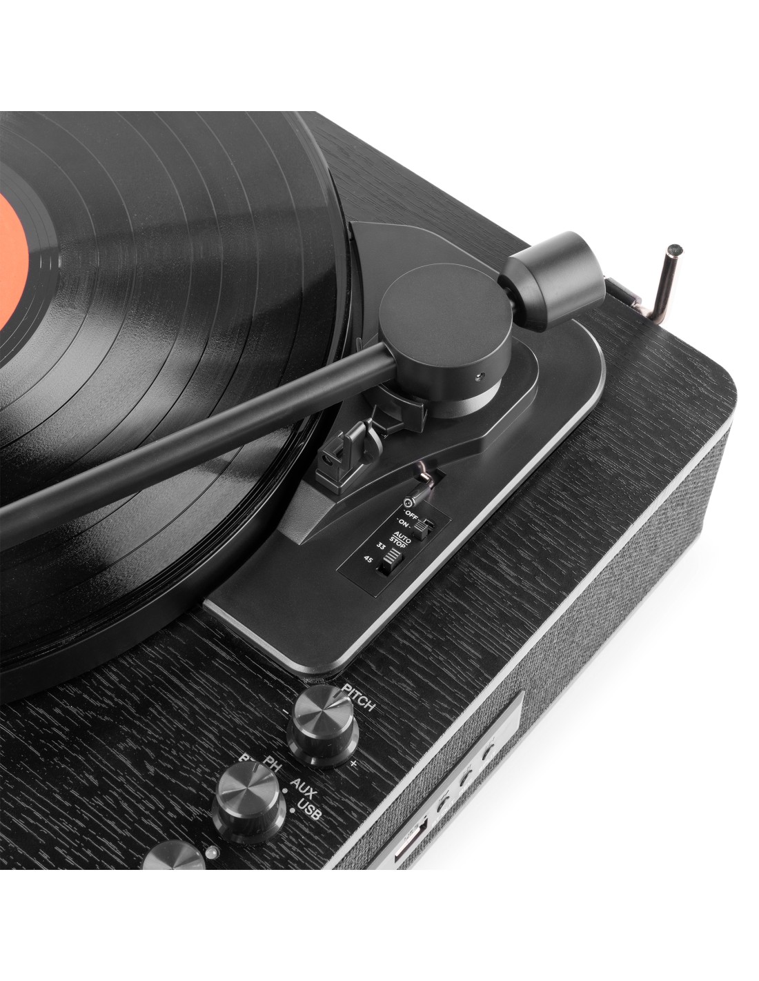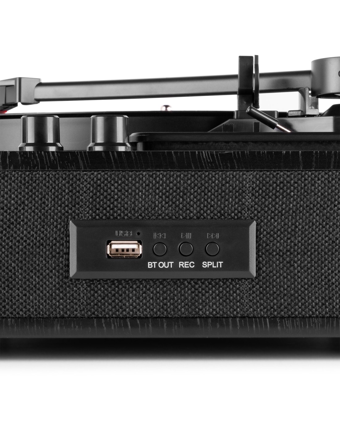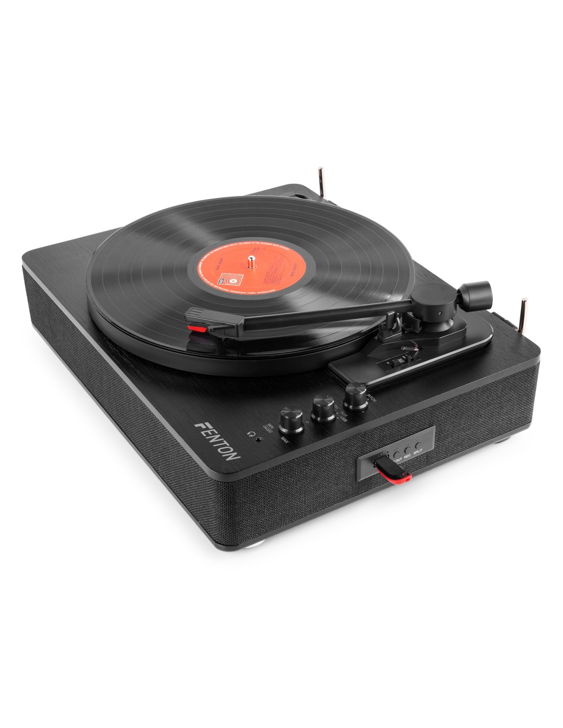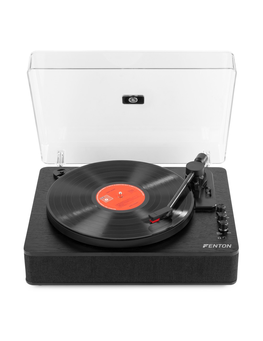 El reproductor Fenton RP162 es un tocadiscos clásico con un receptor BT para transmisión y un puerto USB. Puede grabar sus discos de vinilo directamente en una memoria USB a través del puerto USB. El receptor BT permite escuchar tu música desde el smartphone, tableta, PC u otras unidades BT compatibles. Este giradiscos de alta calidad tiene una carcasa de madera tallada a mano y se completa con una tapa transparente para el polvo.