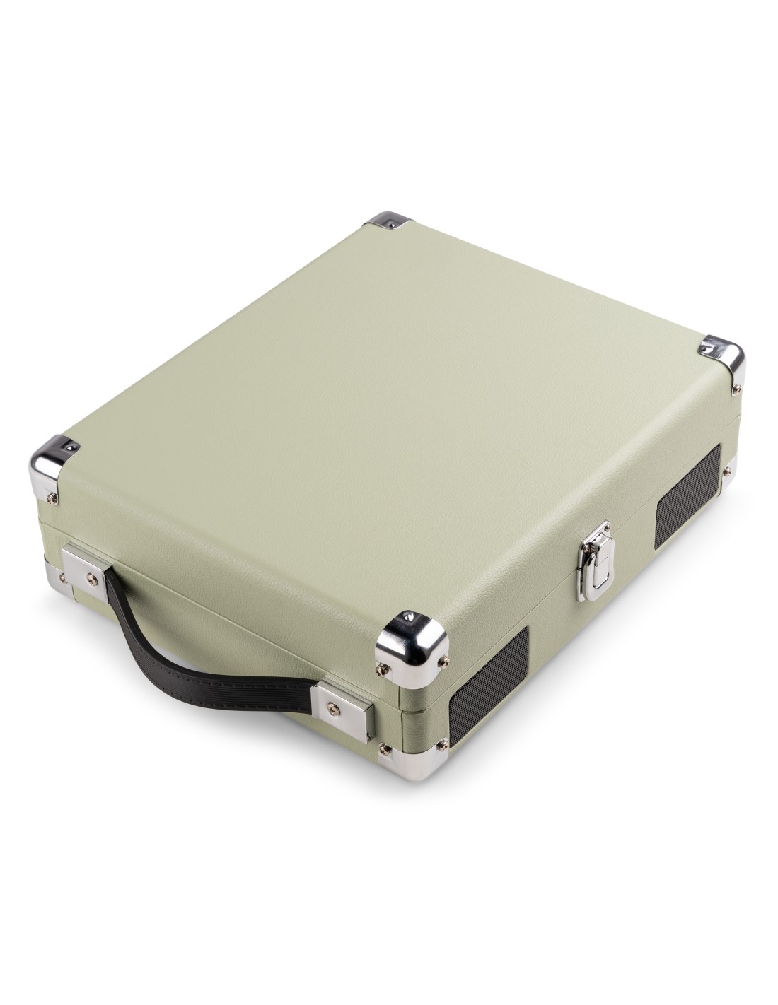 El tocadiscos RP111 con diseño de maleta es la combinación perfecta entre lo moderno y lo retro. Este tocadiscos de diseño elegante tiene un acabado nostálgico con apariencia de cuero, es liviano y permite escuchar música sin tener que conectarlo a un sistema de altavoces gracias al sistema de altavoces estéreo incorporado. El diseño portátil y el asa de transporte le permiten escuchar música en cualquier lugar.