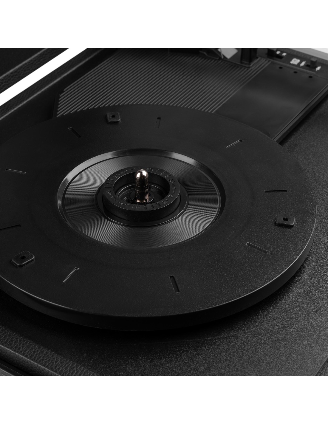 3 velocidades para discos de 33 1/3, 45 y 78 RPM, incl. adaptador