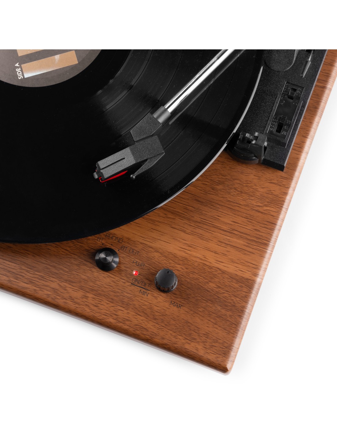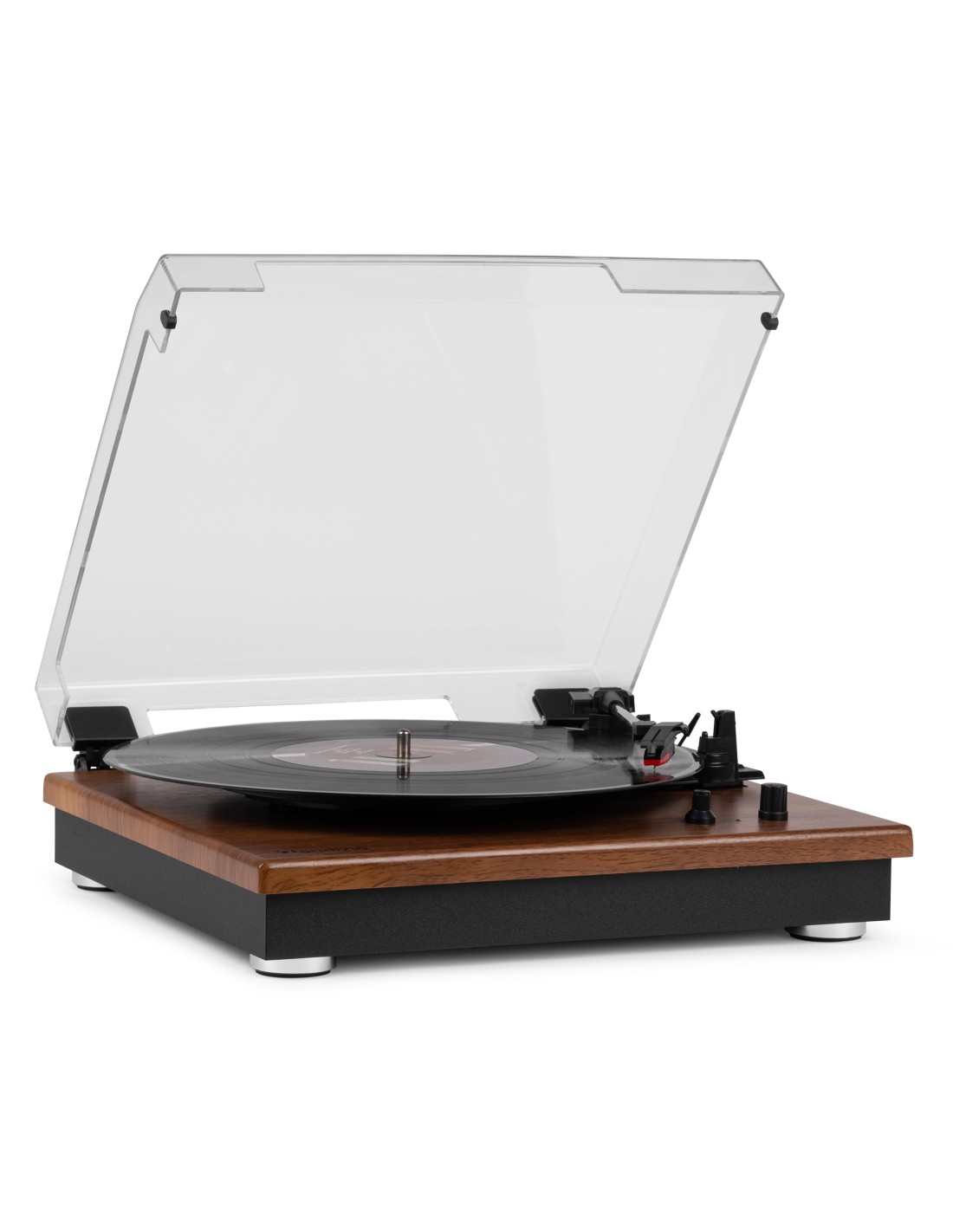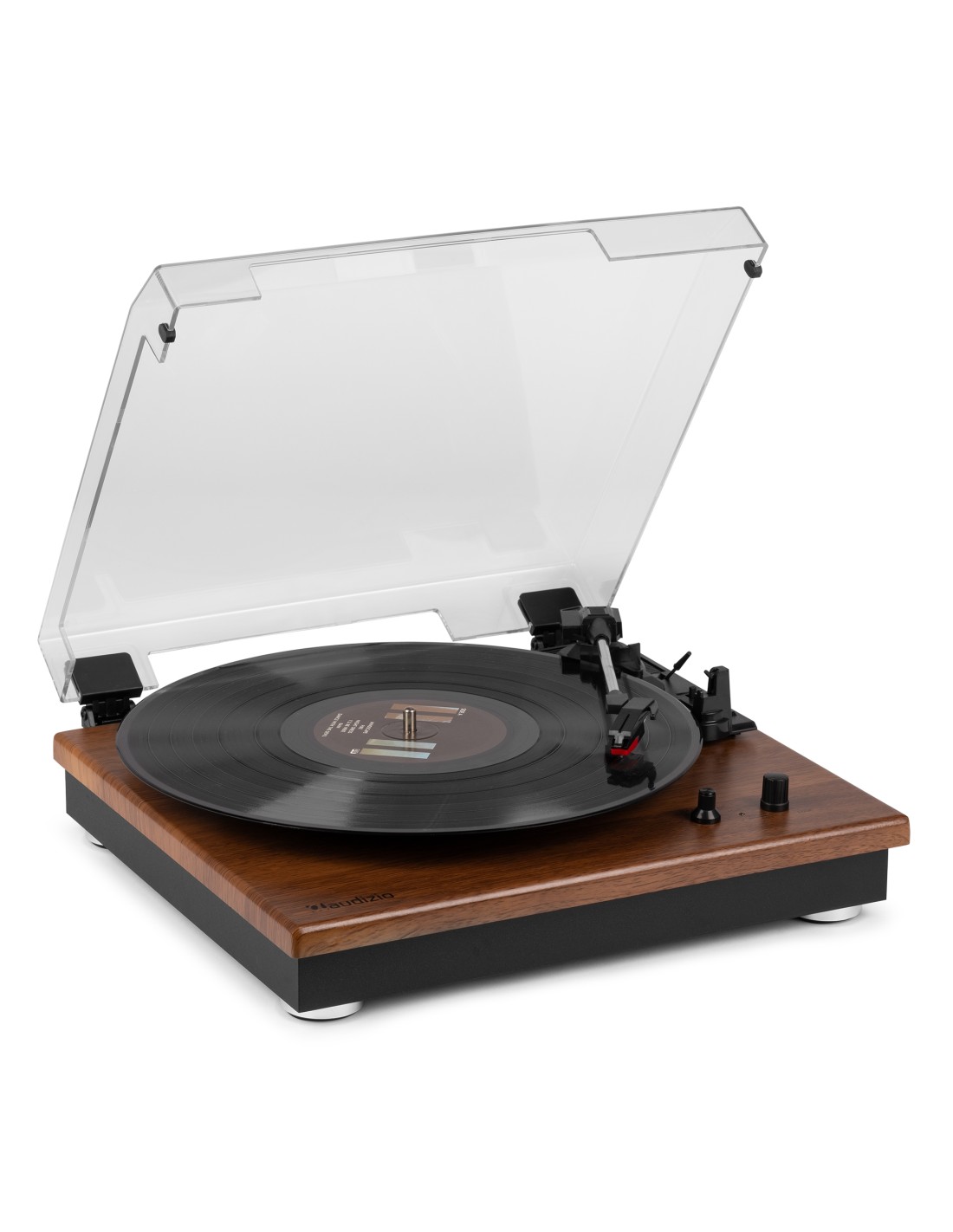 Reproduce tus vinilos con el moderno giradiscos RP112. Este giradiscos de 3 velocidades tiene una sólida base en madera chapada en color madera clara u oscura. Las patas anti-shock aseguran la calidad con cualquier tipo de música. Se conecta de forma inalámbrica a altavoces, auriculares y otros dispositivos equipados con tecnología inalámbrica BT o a sistemas de audio con cable y altavoces activos. Con el receptor BT integrado, la música digital también se puede transmitir de forma inalámbrica desde un teléfono inteligente, una tableta u otro dispositivo compatible con BT y se puede escuchar a través de los altavoces estéreo.