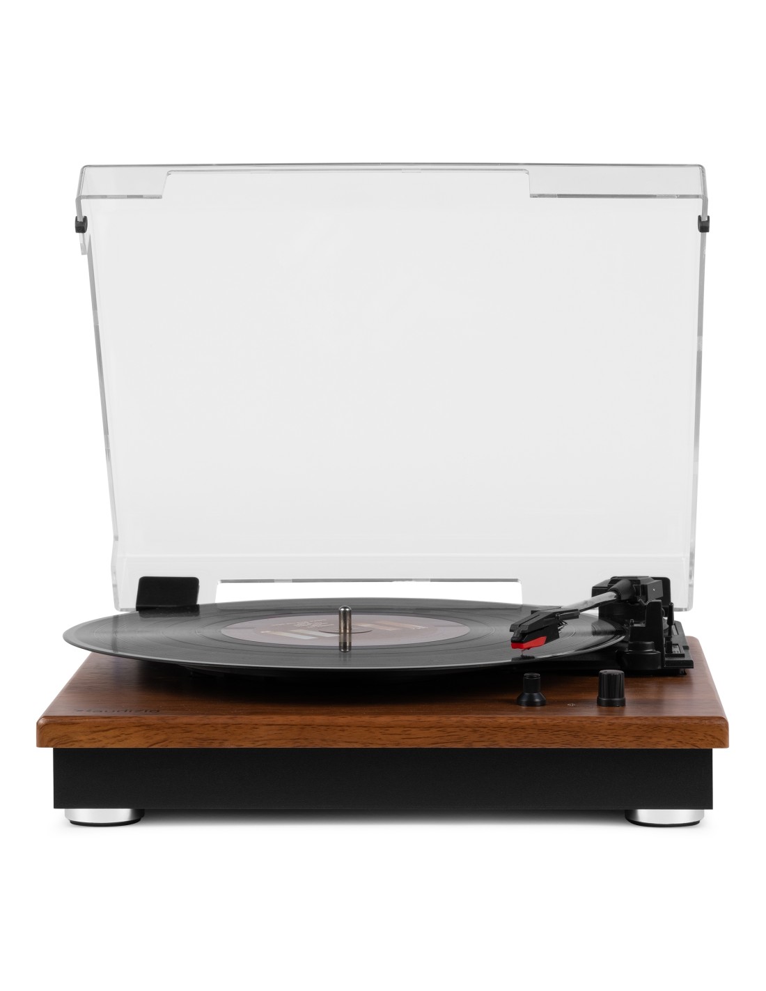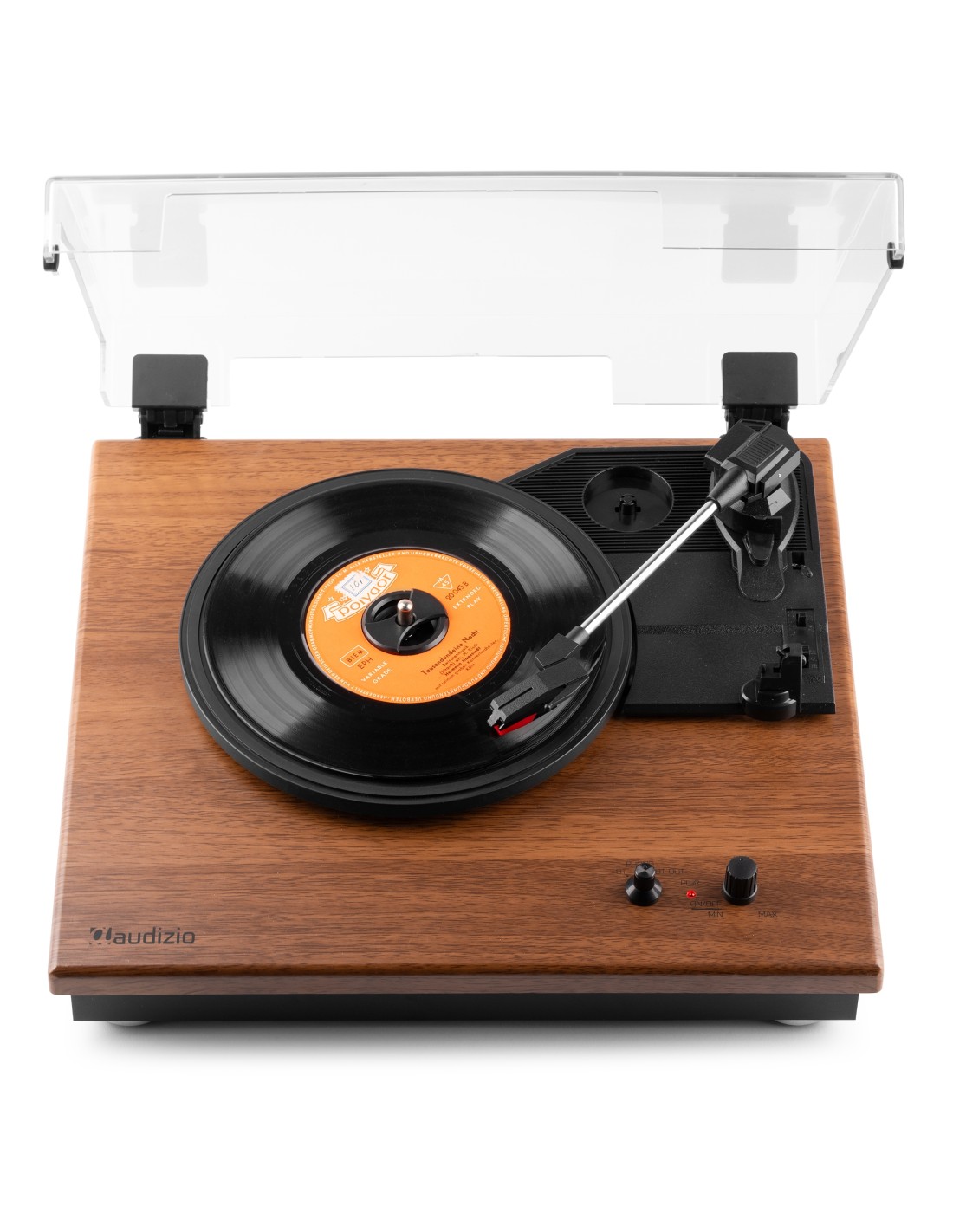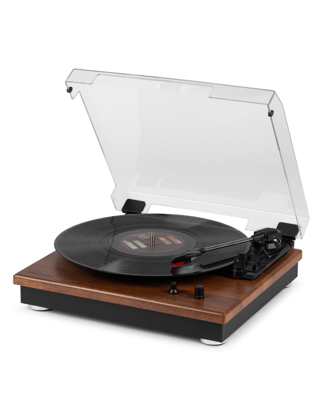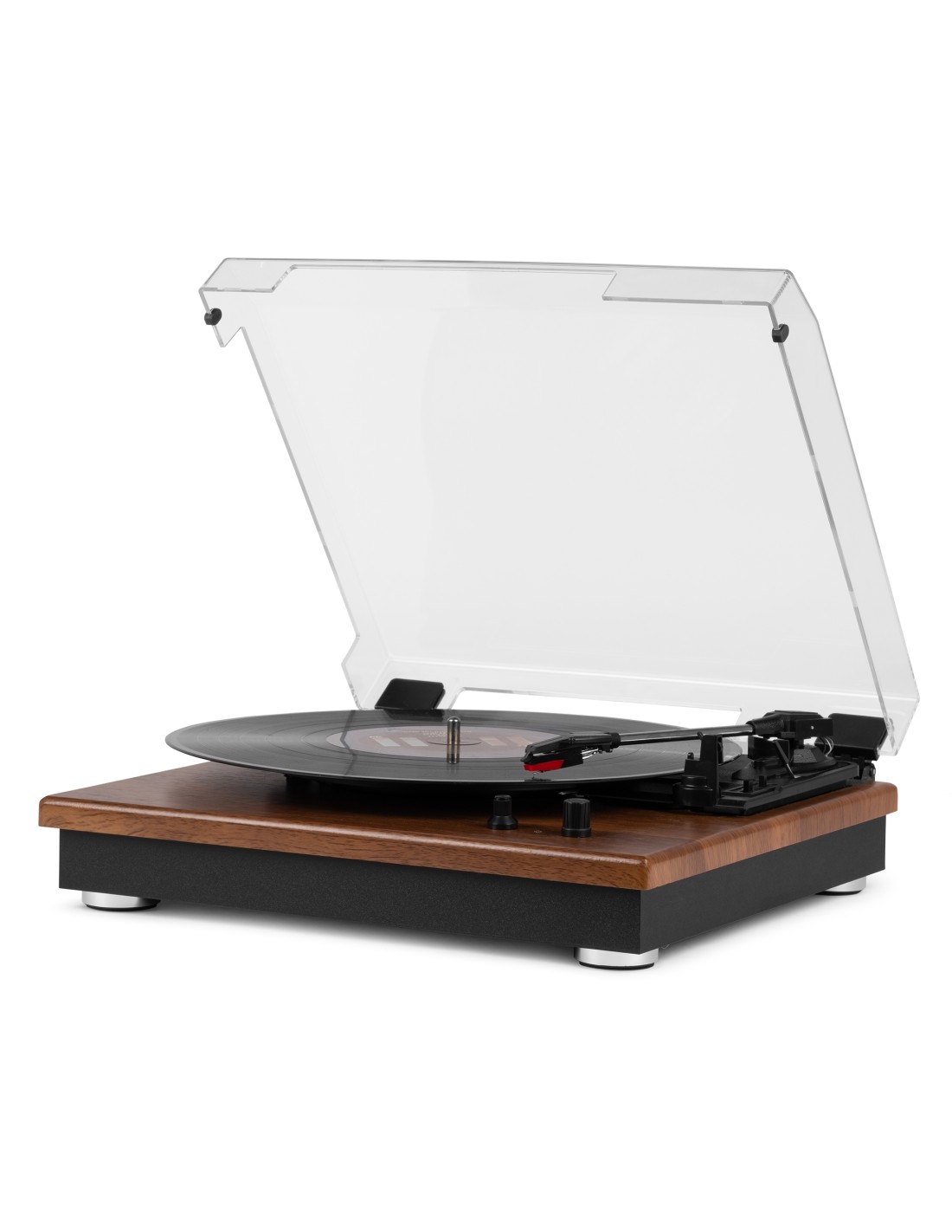 Reproduce tus vinilos con el moderno giradiscos RP112. Este giradiscos de 3 velocidades tiene una sólida base en madera chapada en color madera clara u oscura. Las patas anti-shock aseguran la calidad con cualquier tipo de música. Se conecta de forma inalámbrica a altavoces, auriculares y otros dispositivos equipados con tecnología inalámbrica BT o a sistemas de audio con cable y altavoces activos. Con el receptor BT integrado, la música digital también se puede transmitir de forma inalámbrica desde un teléfono inteligente, una tableta u otro dispositivo compatible con BT y se puede escuchar a través de los altavoces estéreo.