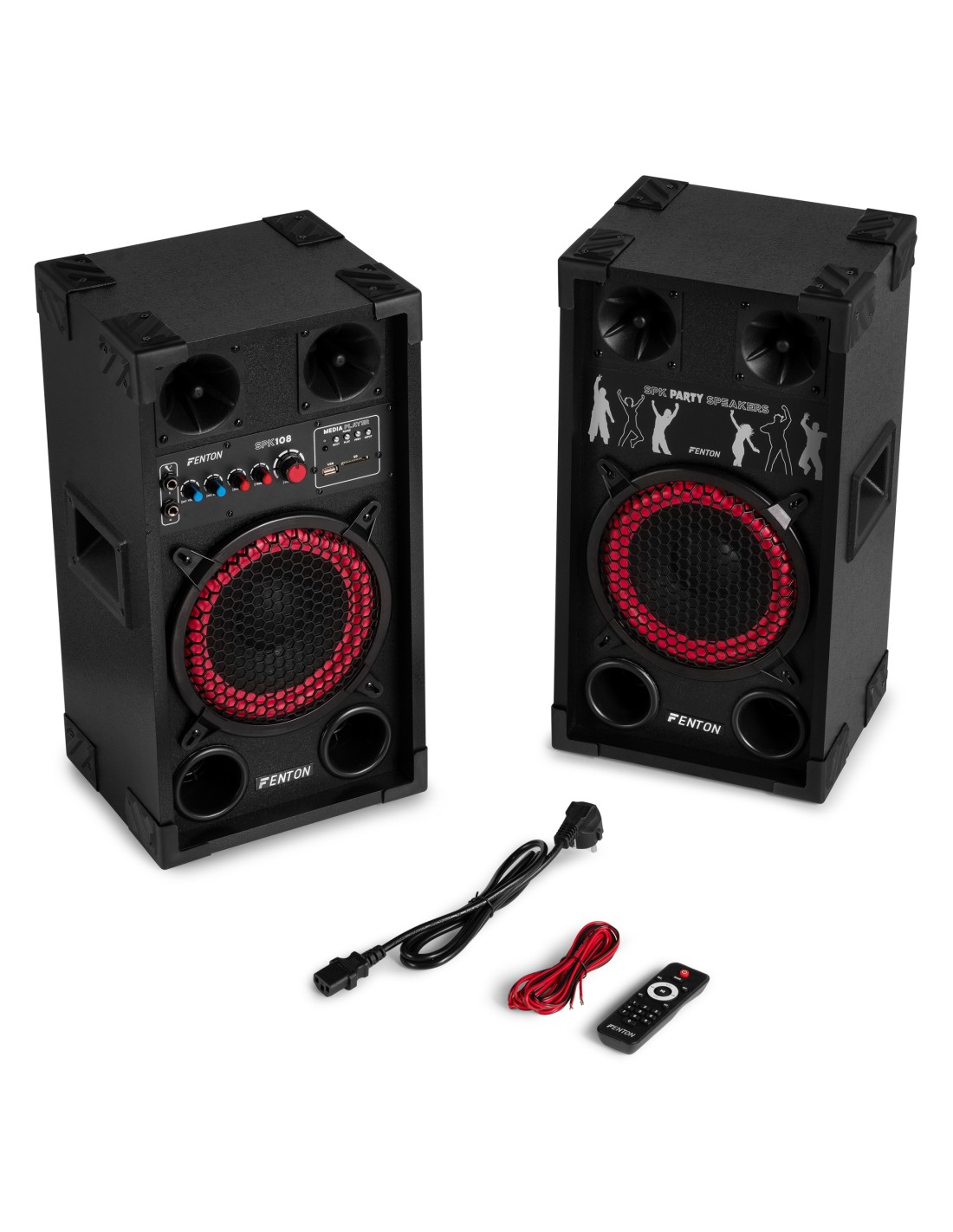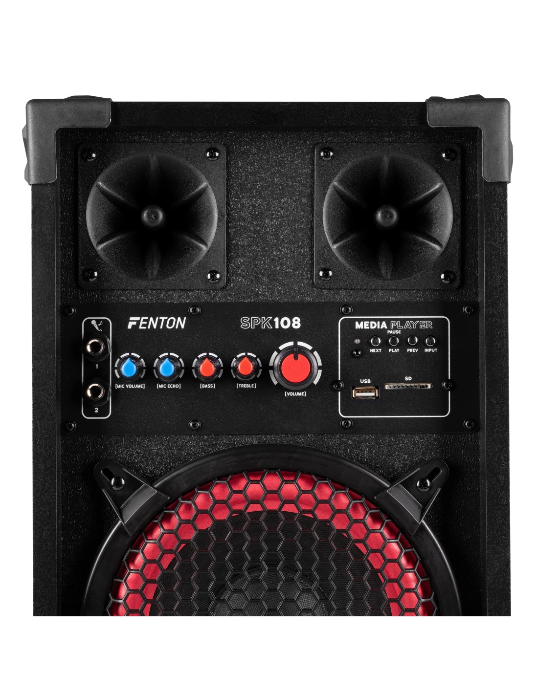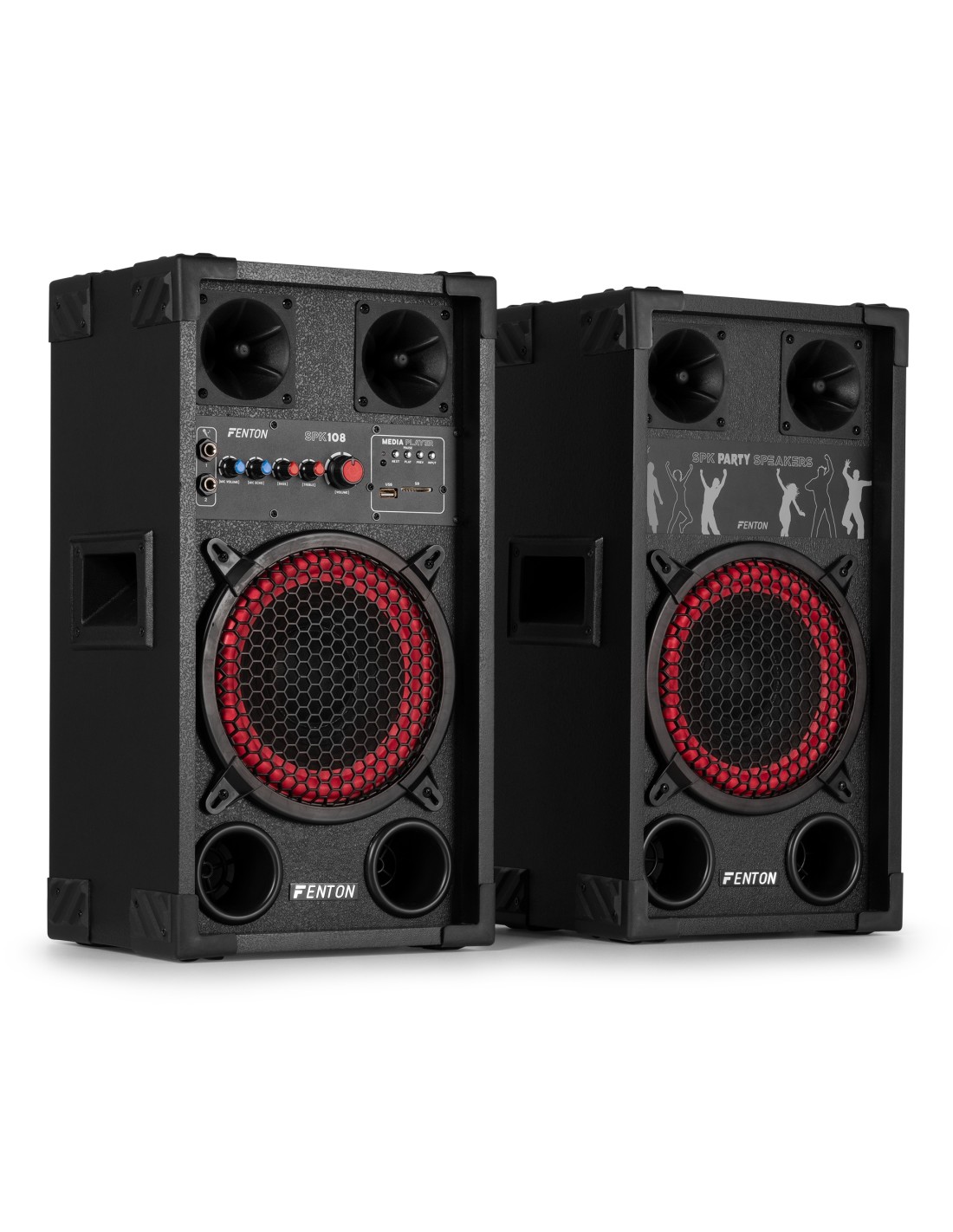 Los conjuntos de altavoces activos Fenton SPK están diseñados para ofrecer un rendimiento potente y facilidad de uso. Con conectividad BT-streaming, un reproductor de MP3 incorporado (USB/SD) y dos entradas de micrófono con efecto de eco, estos altavoces son perfectos para fiestas, karaoke y eventos. Los controles ajustables de graves y agudos proporcionan una experiencia de sonido óptima, mientras que la carcasa robusta y la portabilidad hacen que la serie SPK sea adecuada para cualquier ubicación. ¡Déjate sorprender por el sonido claro y dinámico de Fenton y lleva tu experiencia musical al siguiente nivel!