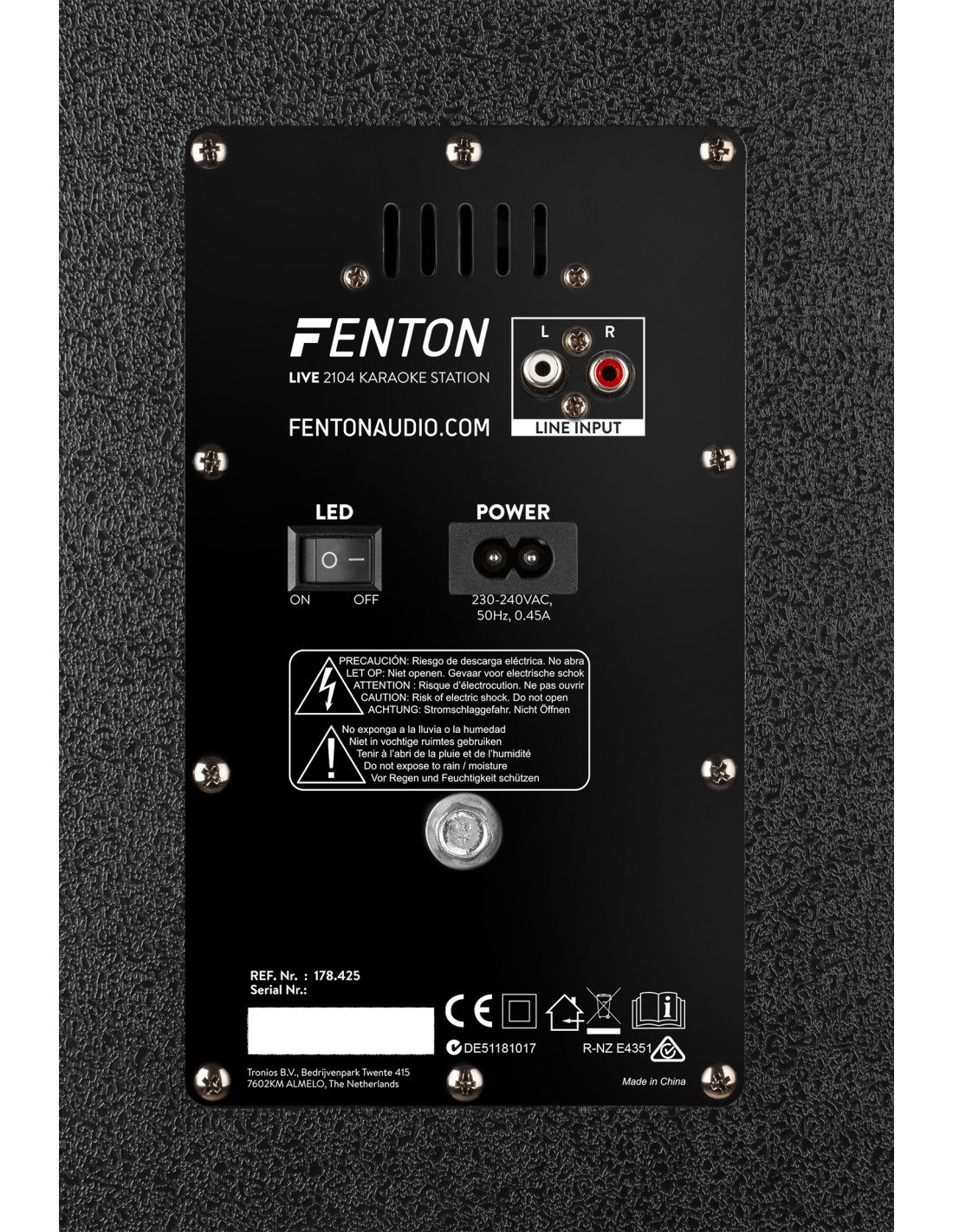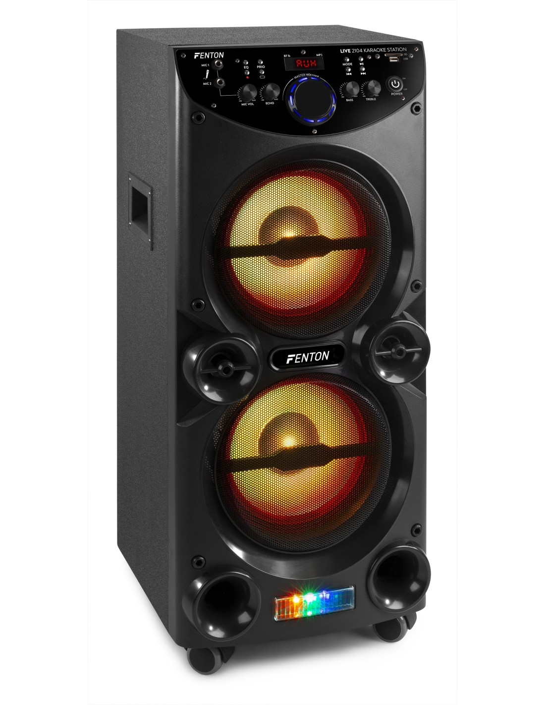 Si quieres robustez y durabilidad con la mayor conectividad posible, entonces el LIVE2104 Karaoke Station de Fenton es lo que estás buscando. Con numerosas entradas como USB y micro SD card, reproductor multimedia con función de grabación y luces LED, este altavoz luce genial y suena aún mejor! El LIVE2104 Karaoke Station incorpora tecnología avanzada inalámbrica BT que te ofrece música de alta calidad y garantiza la claridad de señal aunque estés lejos de la unidad principal. Emparejar tu teléfono, tablet u otra unidad BT, es muy sencillo! Si estás buscando alta potencia, buen sonido y efectos espectaculares de luces, con el LIVE2104 la fiesta ya ha empezado! Incluye 2 micrófonos con cable.