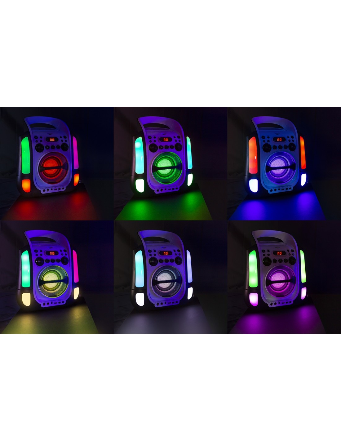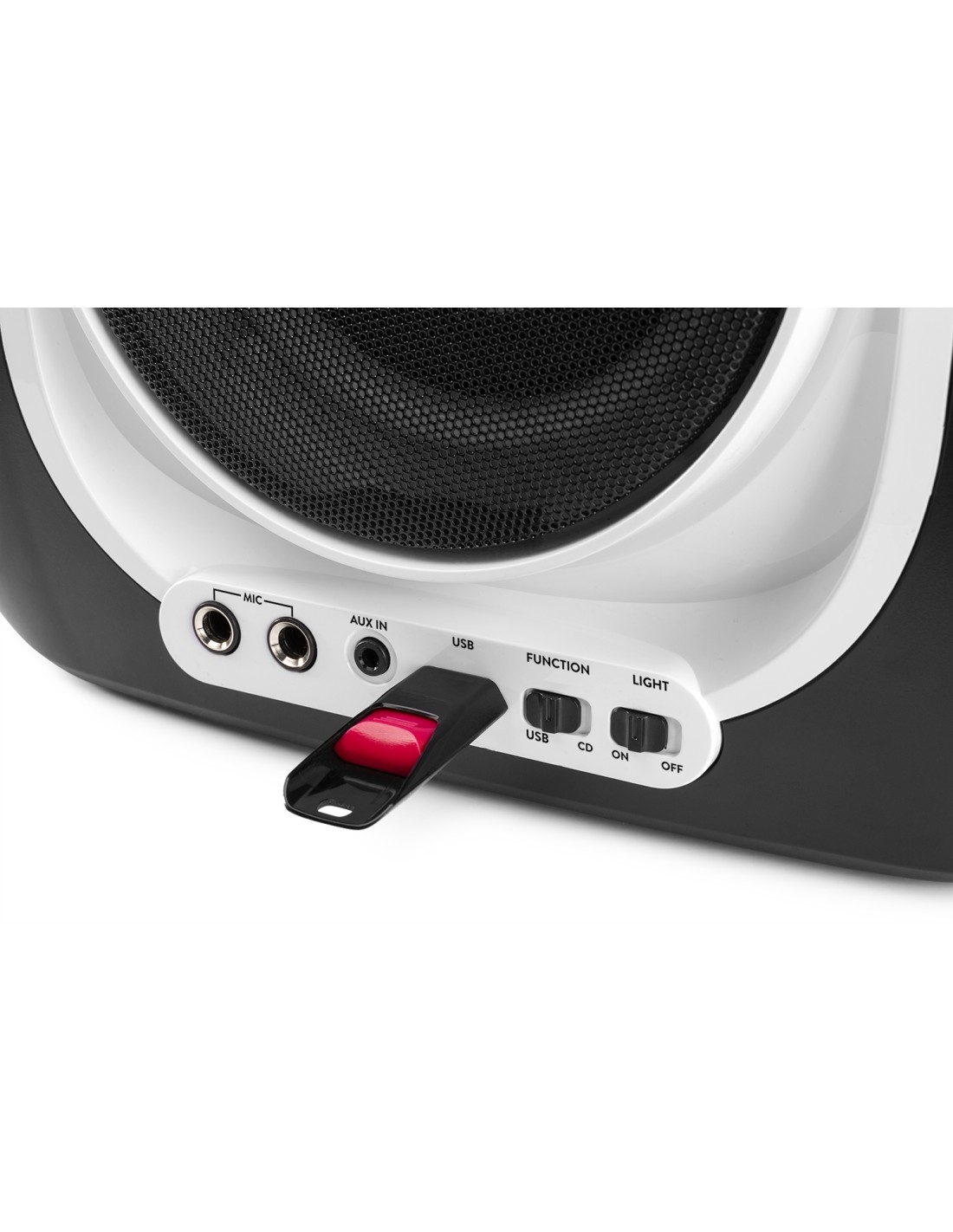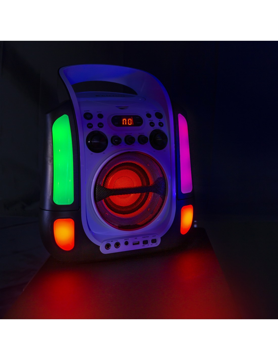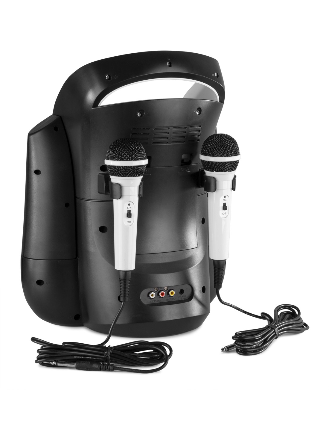 El sistema karaoke SBS30 es totalmente portátil y con efectos de luces. El control de echo digital hará que tu voz este en tono y suene más profesional. El control Auto Voice Control (AVC) ayuda a aprender rápidamente el tono de la canción y se convierte en tu ayudante si te olvidas de la letra. El SBS30 está equipado con tecnología BT para hacer streaming de tu música favorita además de un reproductor CD y conexión USB. Se puede conectar esta unidad a una pantalla de TV o proyector por la salida de video de la parte trasera, y si necesitas más potencia puedes conectar la unidad a un amplificador HiFi o etapa de potencia. Incluye 2 micrófonos (con cable) con función echo para completar tu fiesta karaoke.