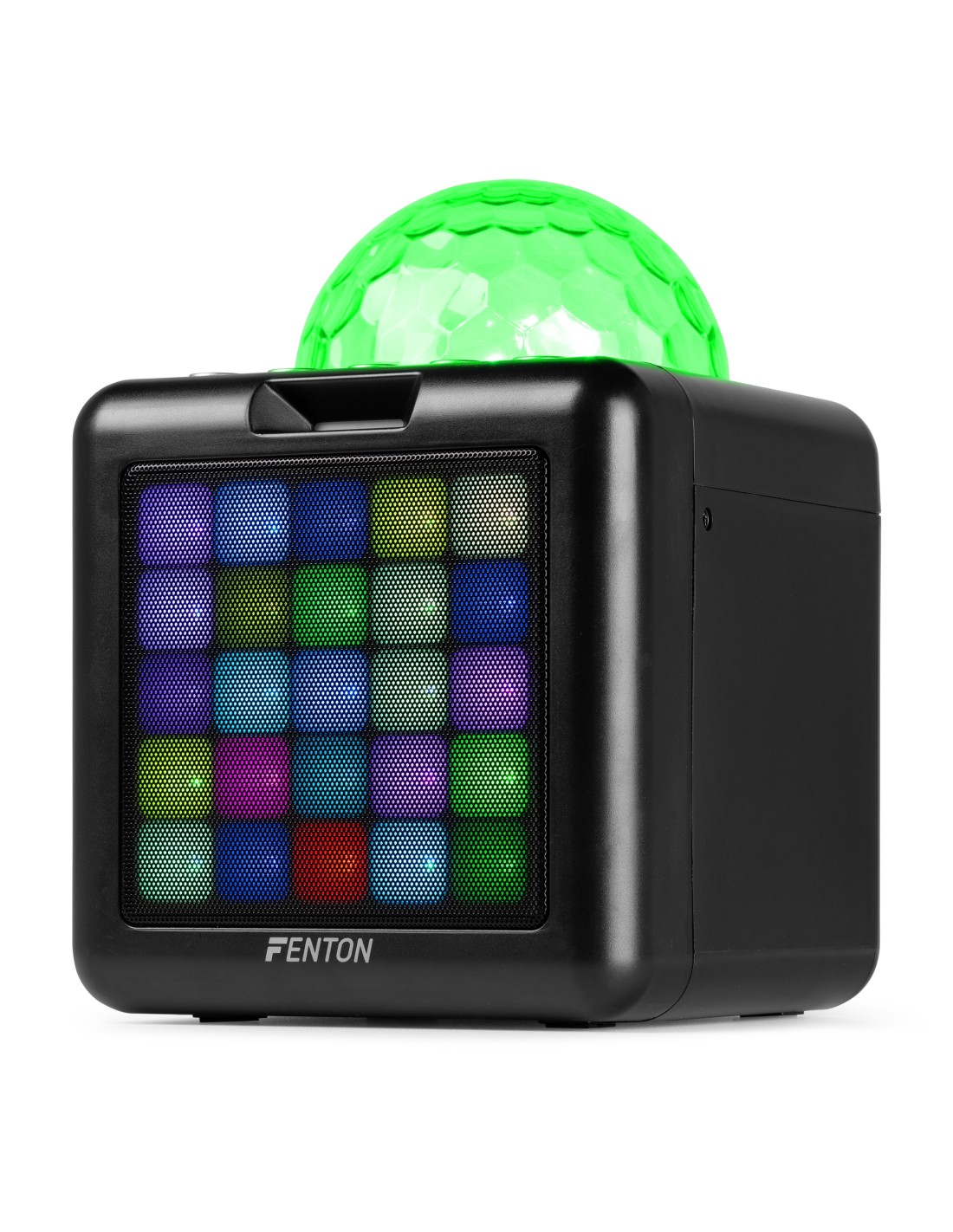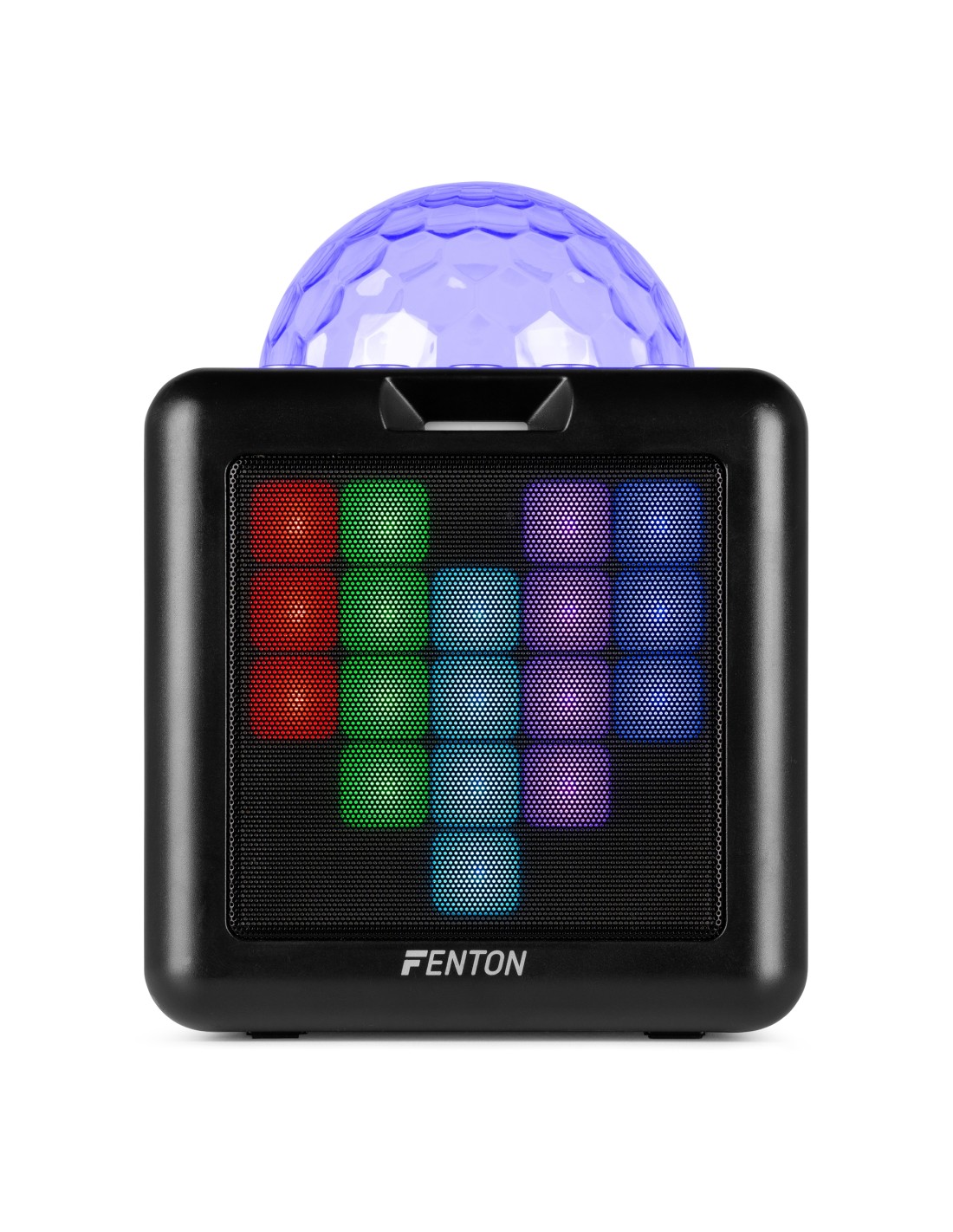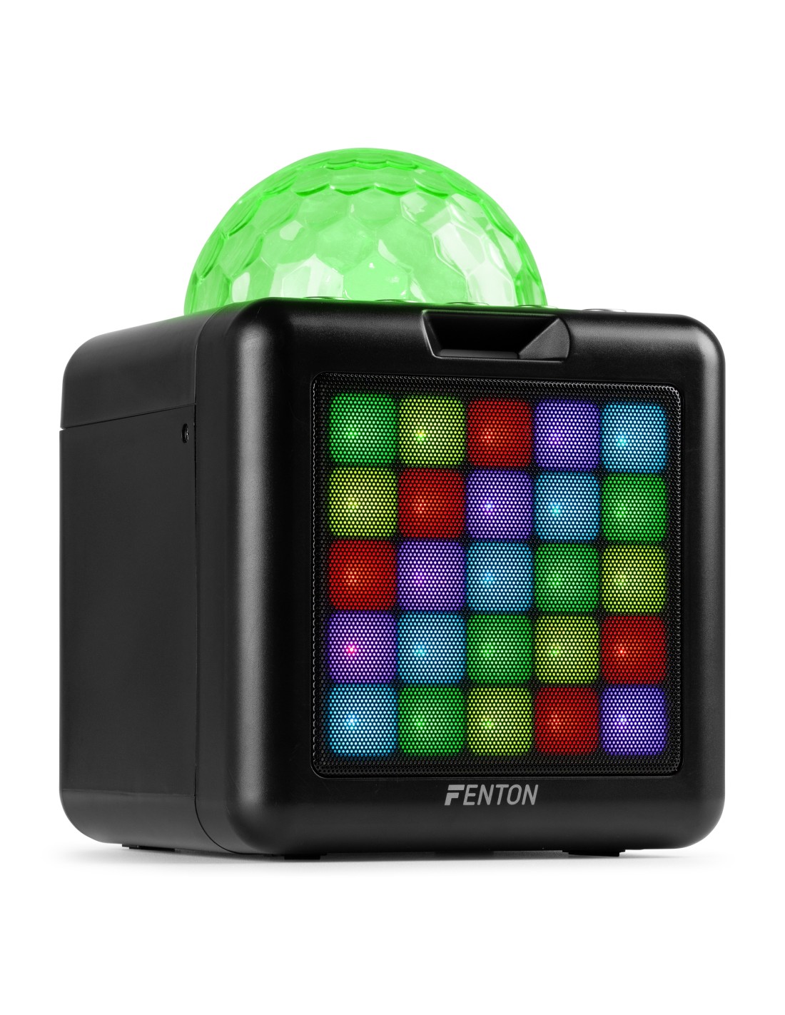 ¡Experimente la máxima diversión de karaoke con el KAR15! Transmita audio de forma inalámbrica a través de Bluetooth y elija entre cuatro efectos de cambio de voz para mejorar su interpretación. La bola de discoteca LED RGB en la parte superior y las luces LED incorporadas en el frente giran y parpadean al ritmo, transformando su entorno en un fascinante espectáculo de luces en paredes y techos. Los dos micrófonos y la batería recargable de litio garantizan una diversión ininterrumpida en la fiesta, mientras que las dos entradas AUX brindan opciones de conexión adicionales para fuentes de sonido externas. ¡El KAR15 es tu máquina de karaoke todo en uno, que ofrece diversión sin fin y convierte cualquier reunión en una vibrante celebración musical!